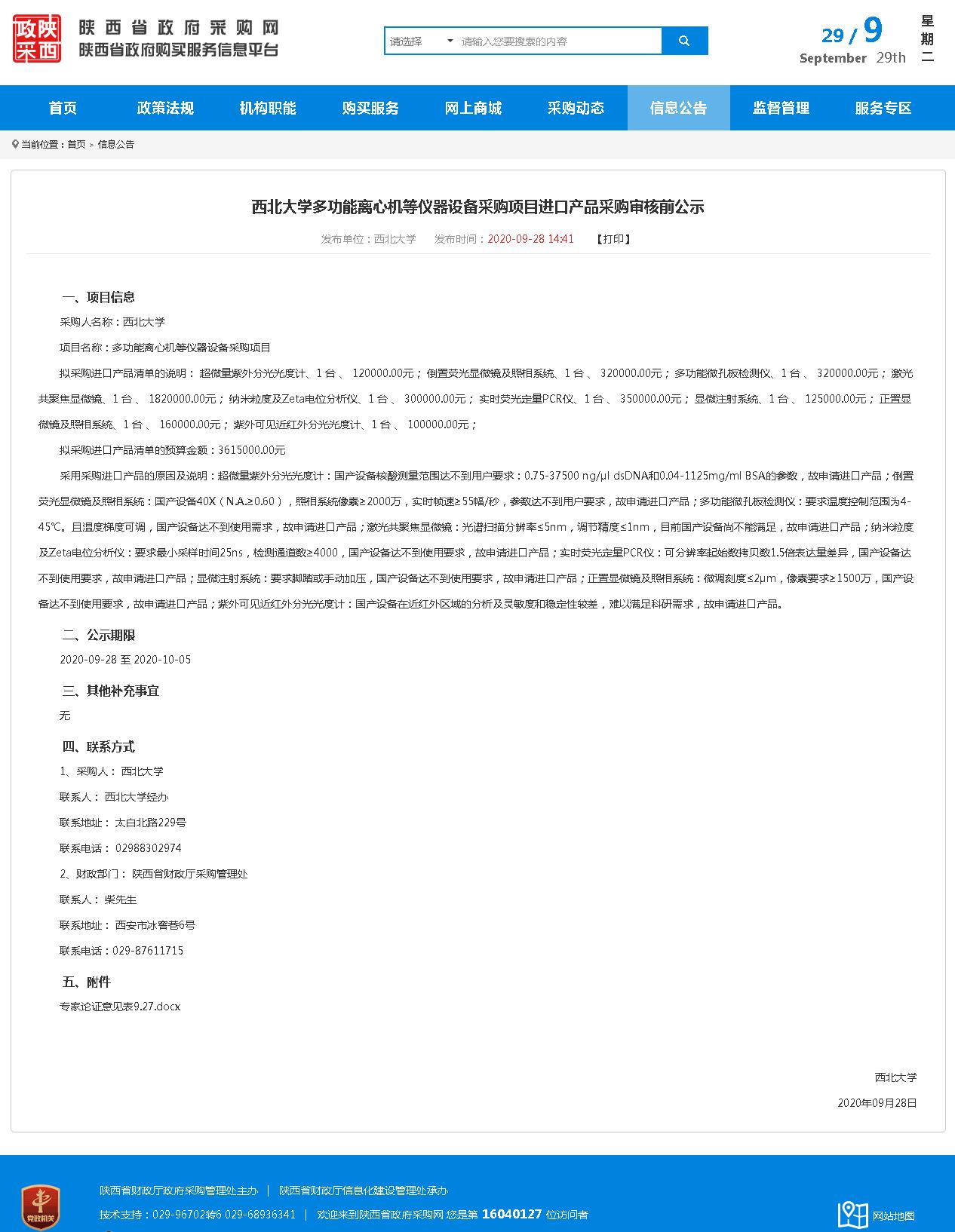 赢博官方(中国)总部多功能离心机等仪器设备采购项目进口产品采购审核前公示