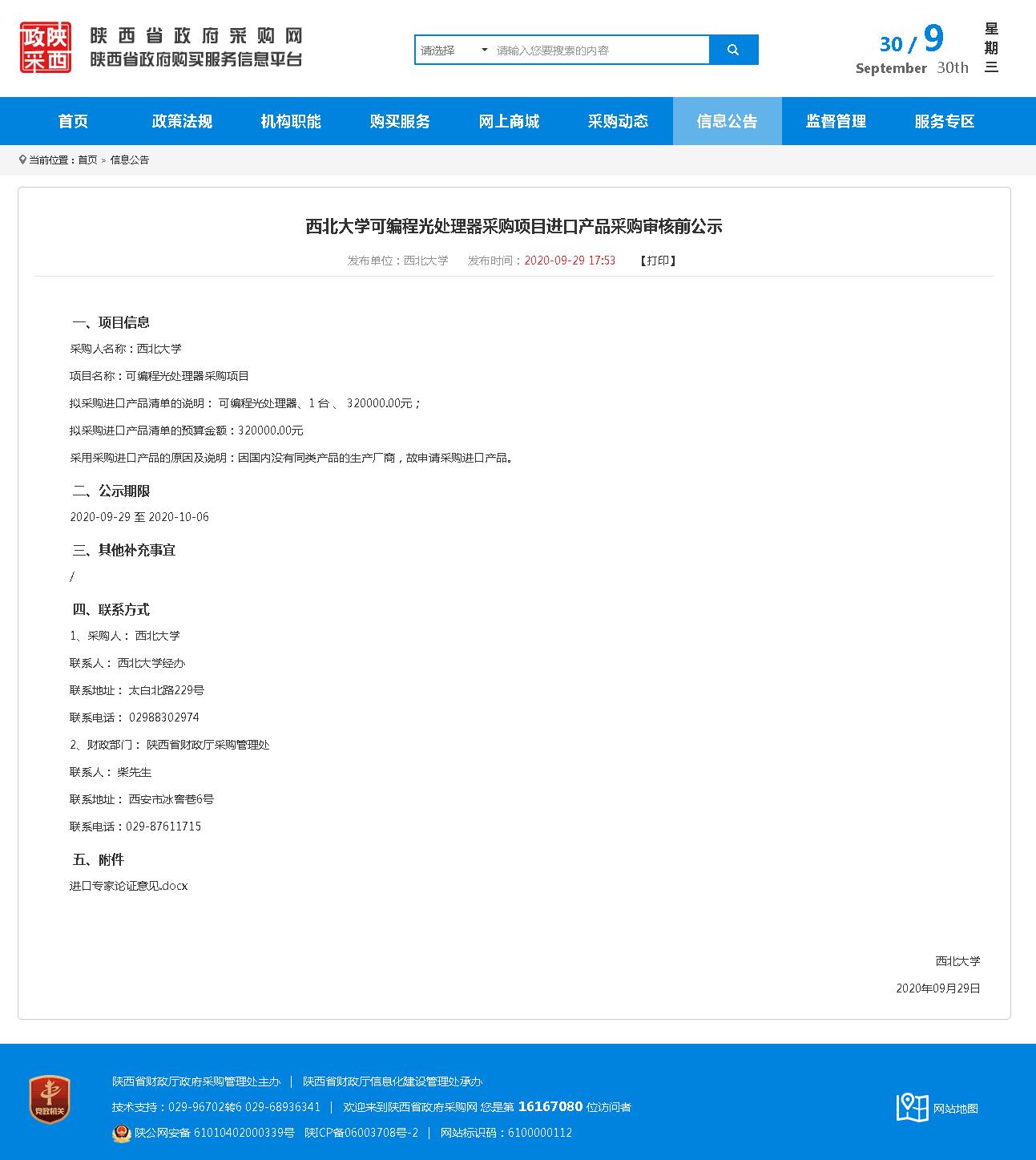 赢博官方(中国)总部可编程光处理器采购项目进口产品采购审核前公示