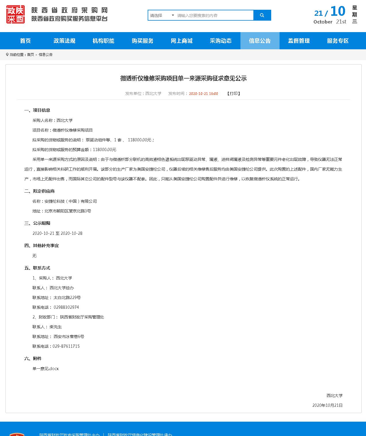 赢博官方(中国)总部微透析仪维修采购项目进口产品采购审核前公示