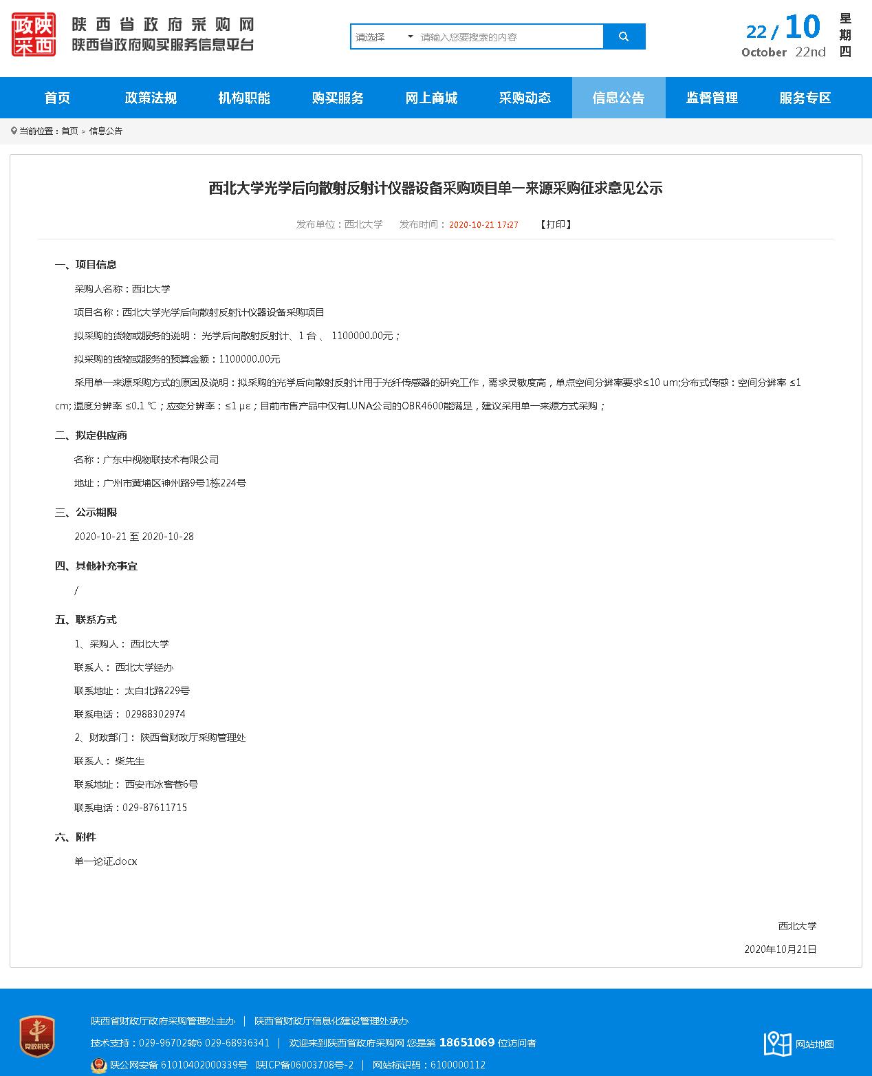 赢博官方(中国)总部光学后向散射反射计仪器设备采购项目单一来源采购征求意见公示