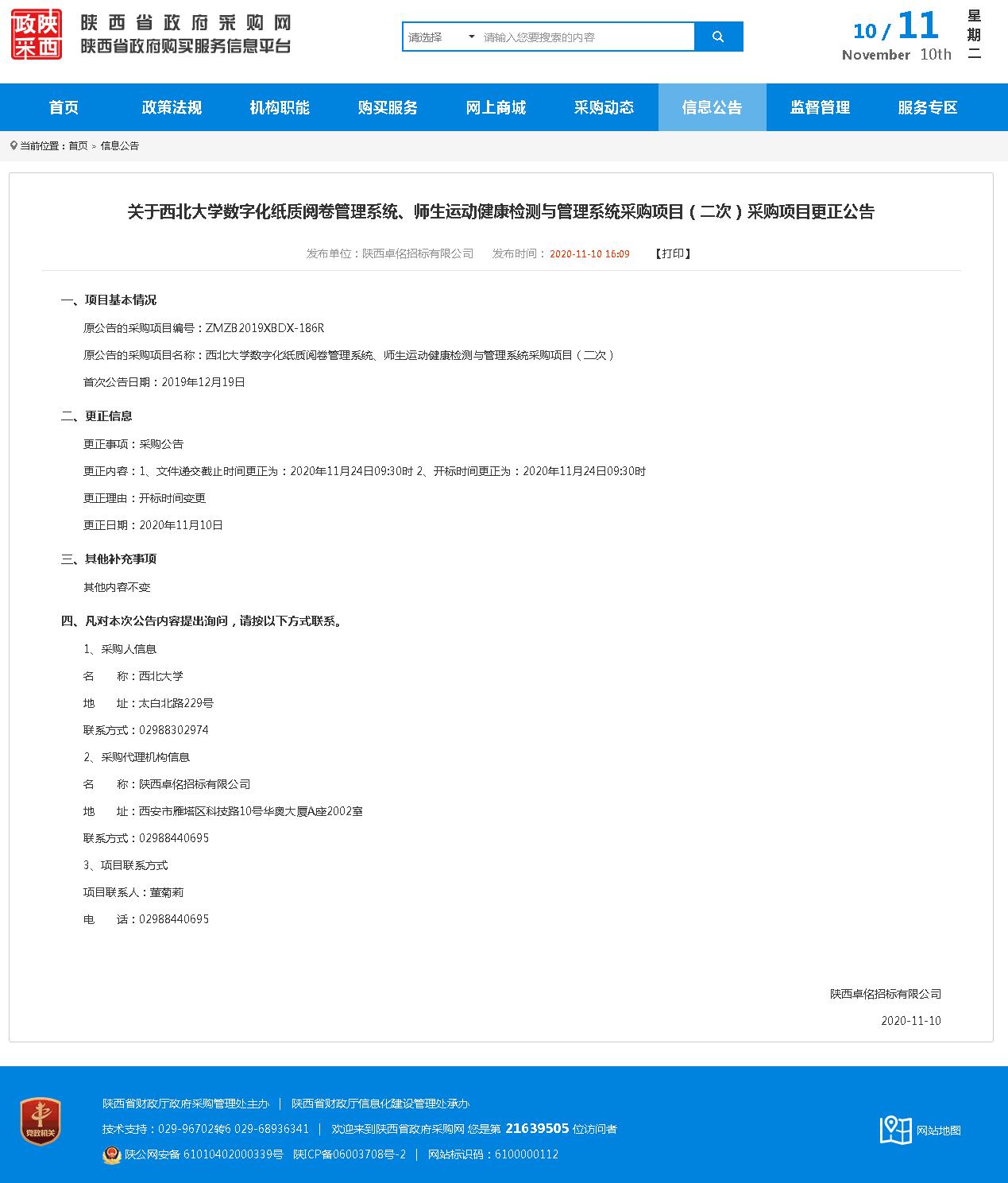赢博官方(中国)总部数字化纸质阅卷管理系统、师生运动健康检测与管理系统采购项目(二次)采购项目更正公告