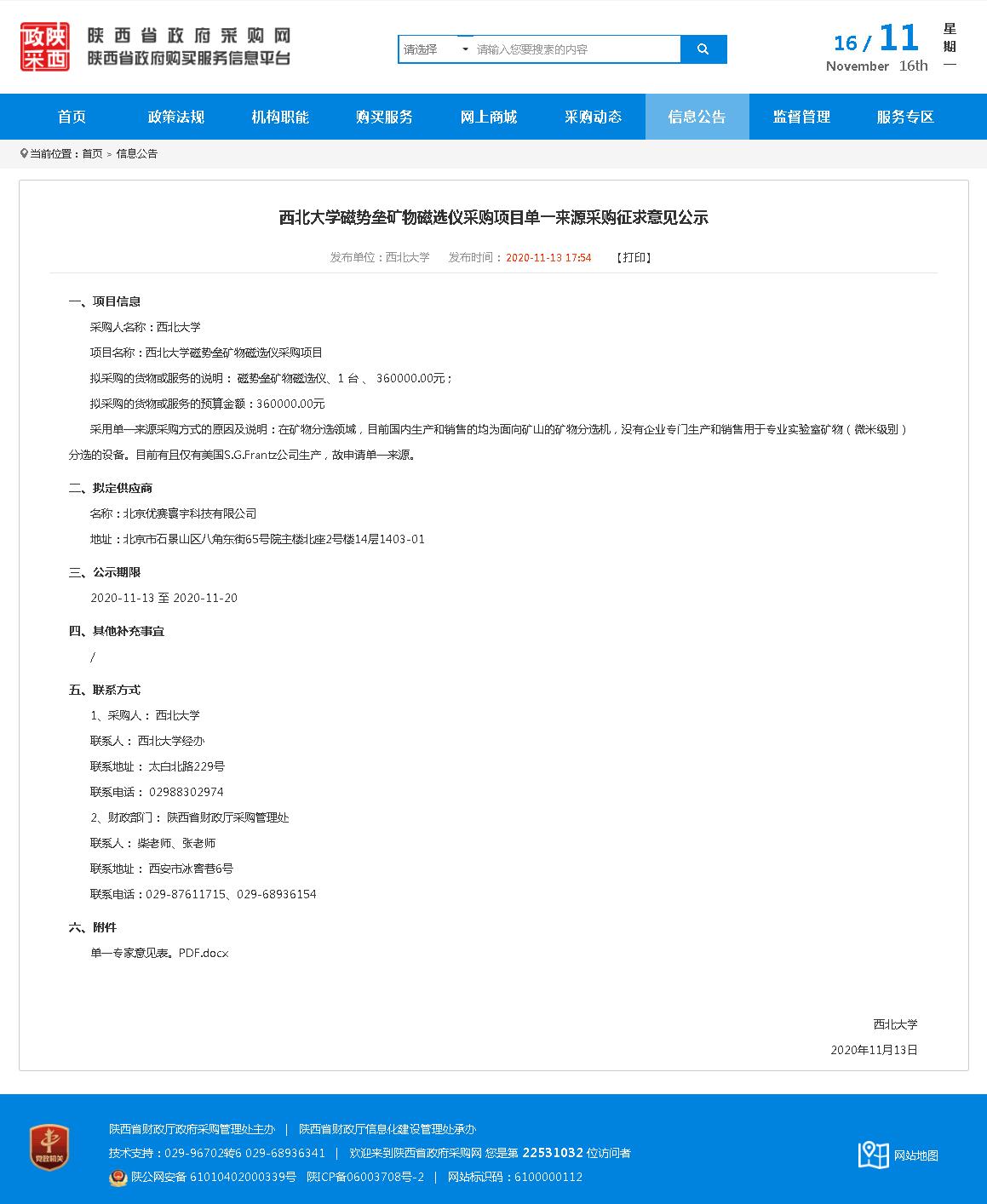 赢博官方(中国)总部磁势垒矿物磁选仪采购项目单一来源采购征求意见公示