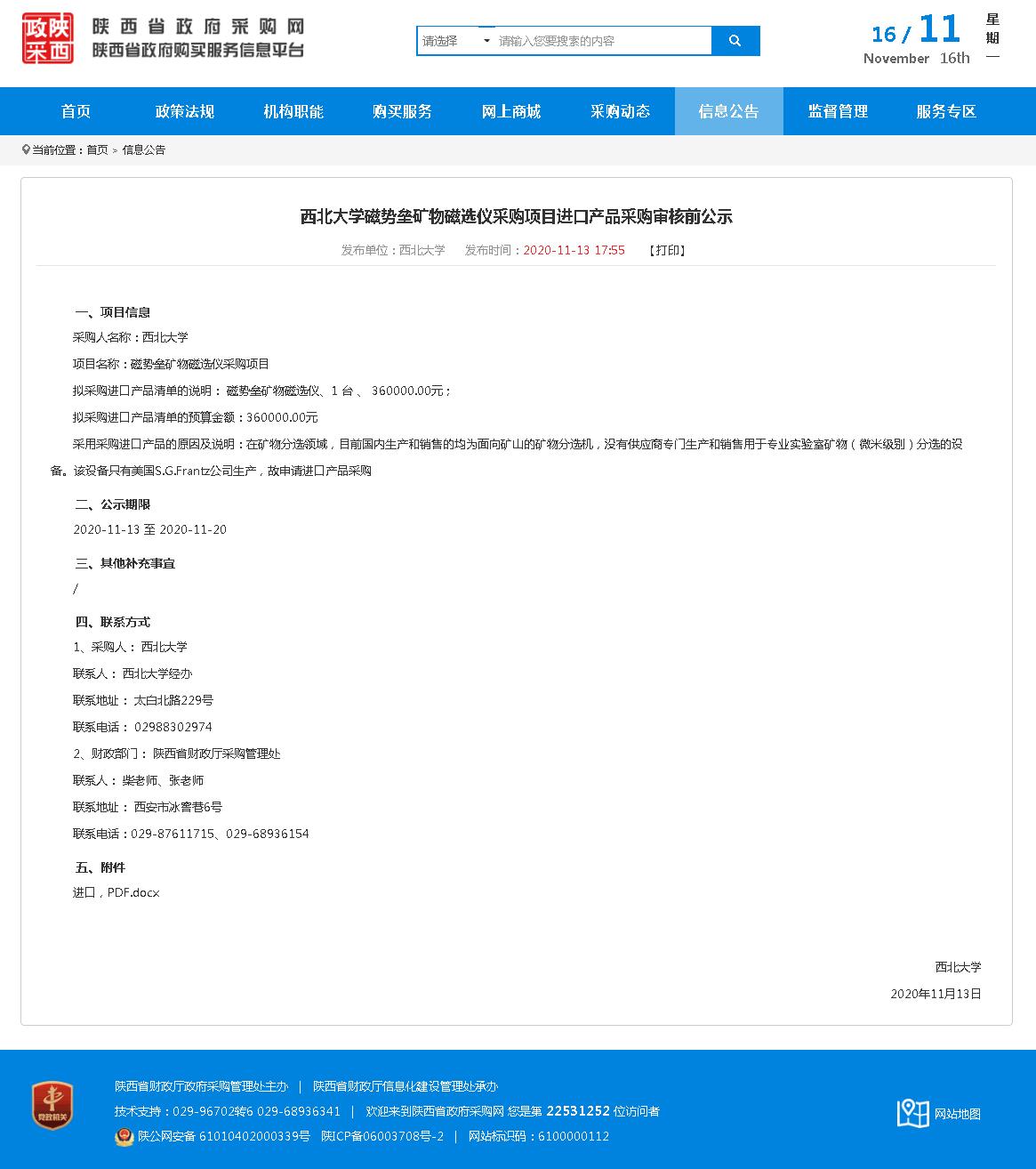 赢博官方(中国)总部磁势垒矿物磁选仪采购项目进口产品采购审核前公示