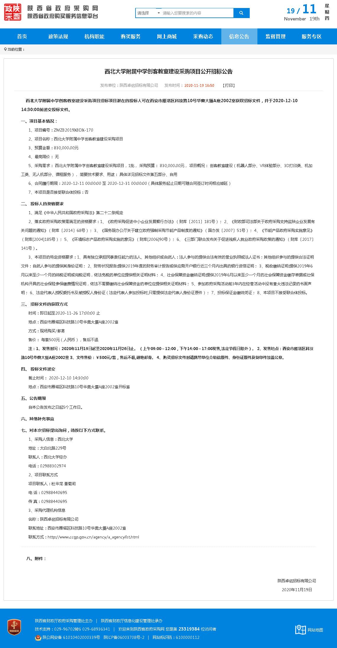 赢博官方(中国)总部附属中学创客教室建设采购项目公开招标公告