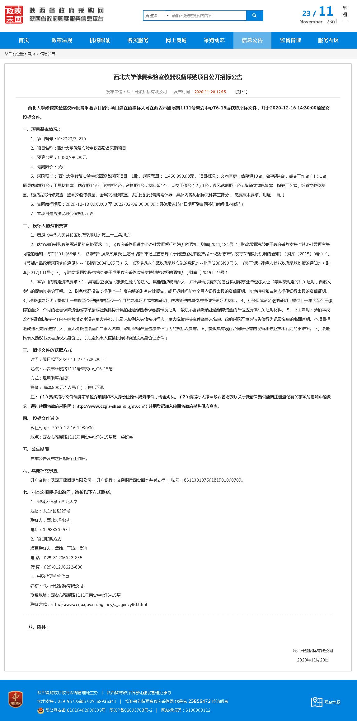 赢博官方(中国)总部修复实验室仪器设备采购项目公开招标公告