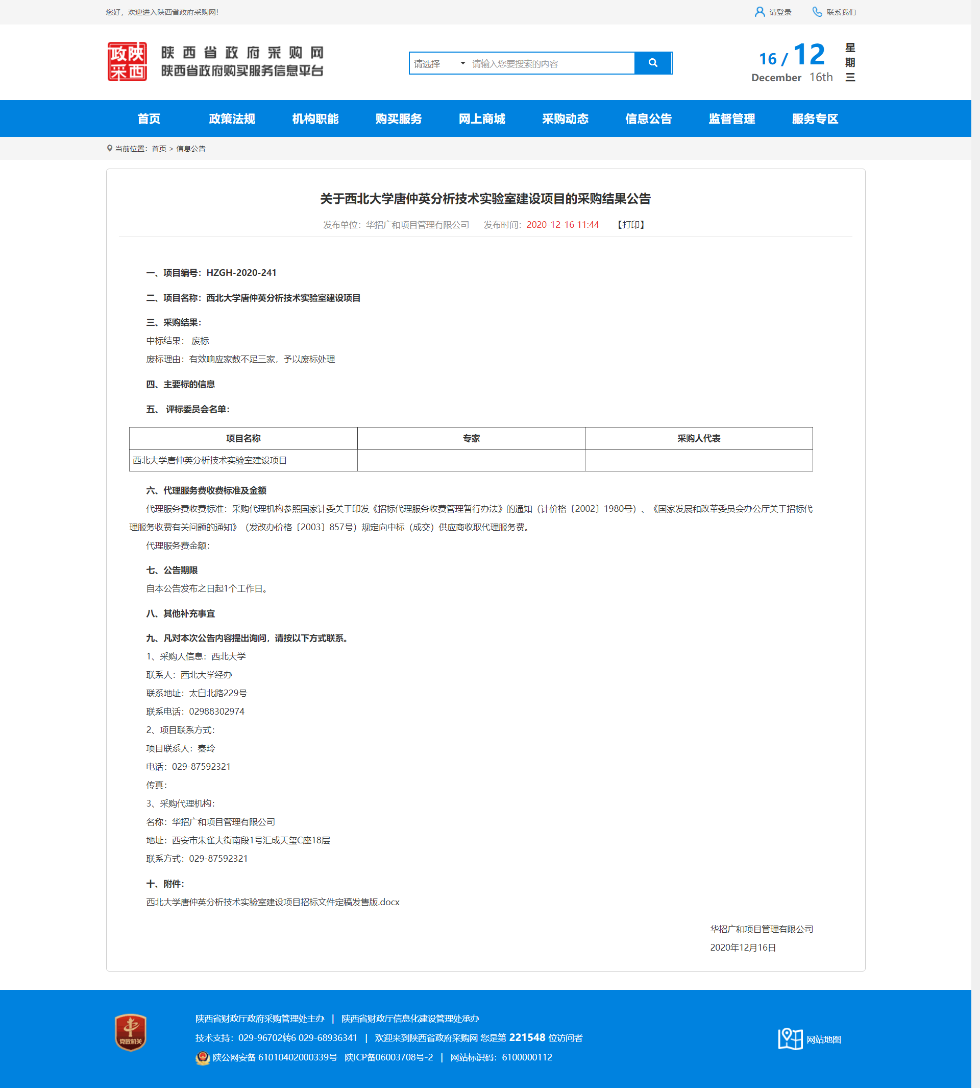 关于赢博官方(中国)总部唐仲英分析技术实验室建设项目的采购结果公告 作者: 编辑:薛利娟 时间:2020-12-16 原公告地址:http://www.ccgp-shaanxi.gov.cn/notice/noticeDetail.do?noticeguid=8a85be31765f9a2a017669a24474710e