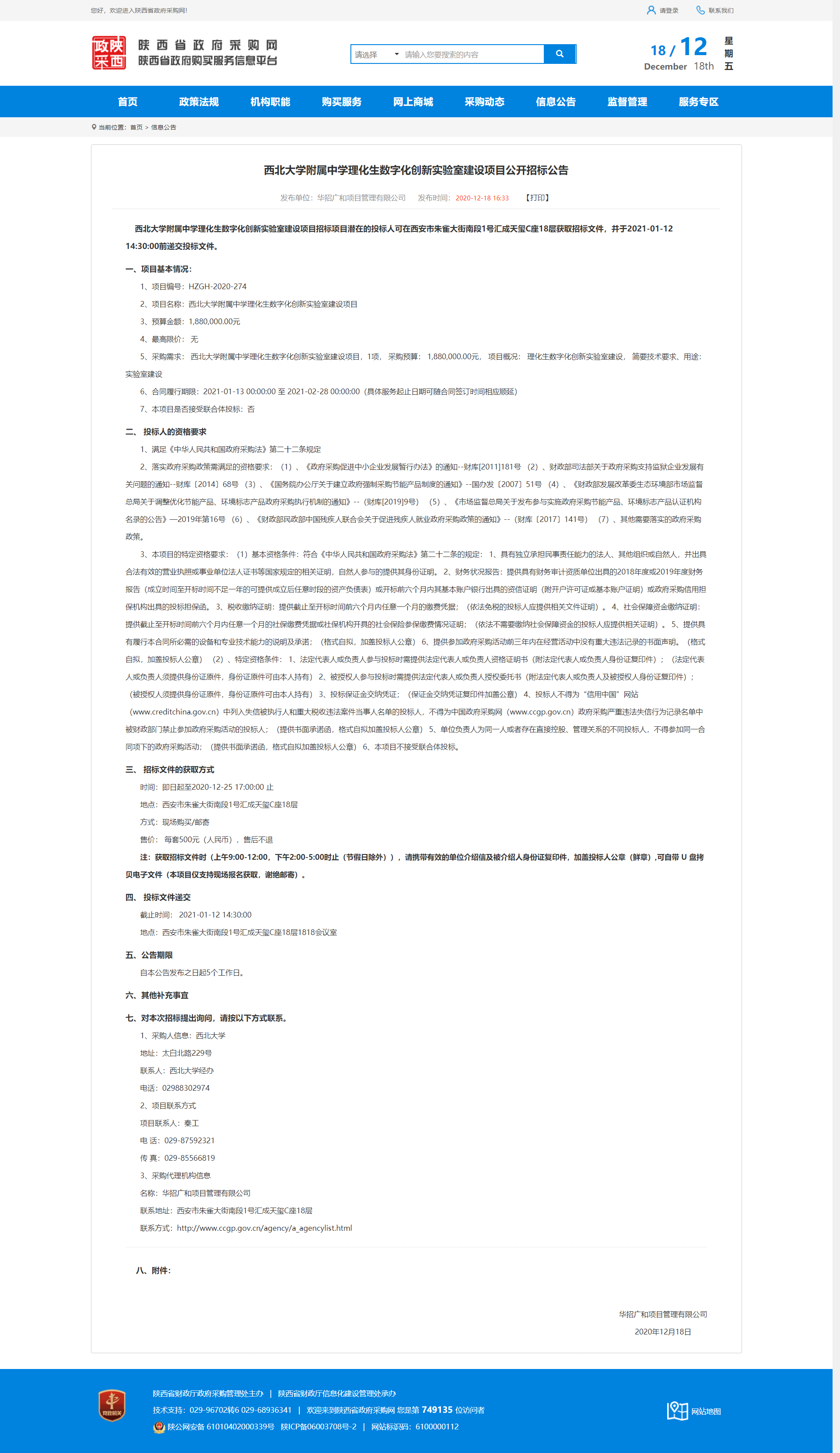 赢博官方(中国)总部附属中学理化生数字化创新实验室建设项目公开招标公告 作者: 编辑:薛利娟 时间:2020-12-18 原公告地址:http://www.ccgp-shaanxi.gov.cn/notice/noticeDetail.do?noticeguid=8a85be32765f9c9b017674de4e727a0f