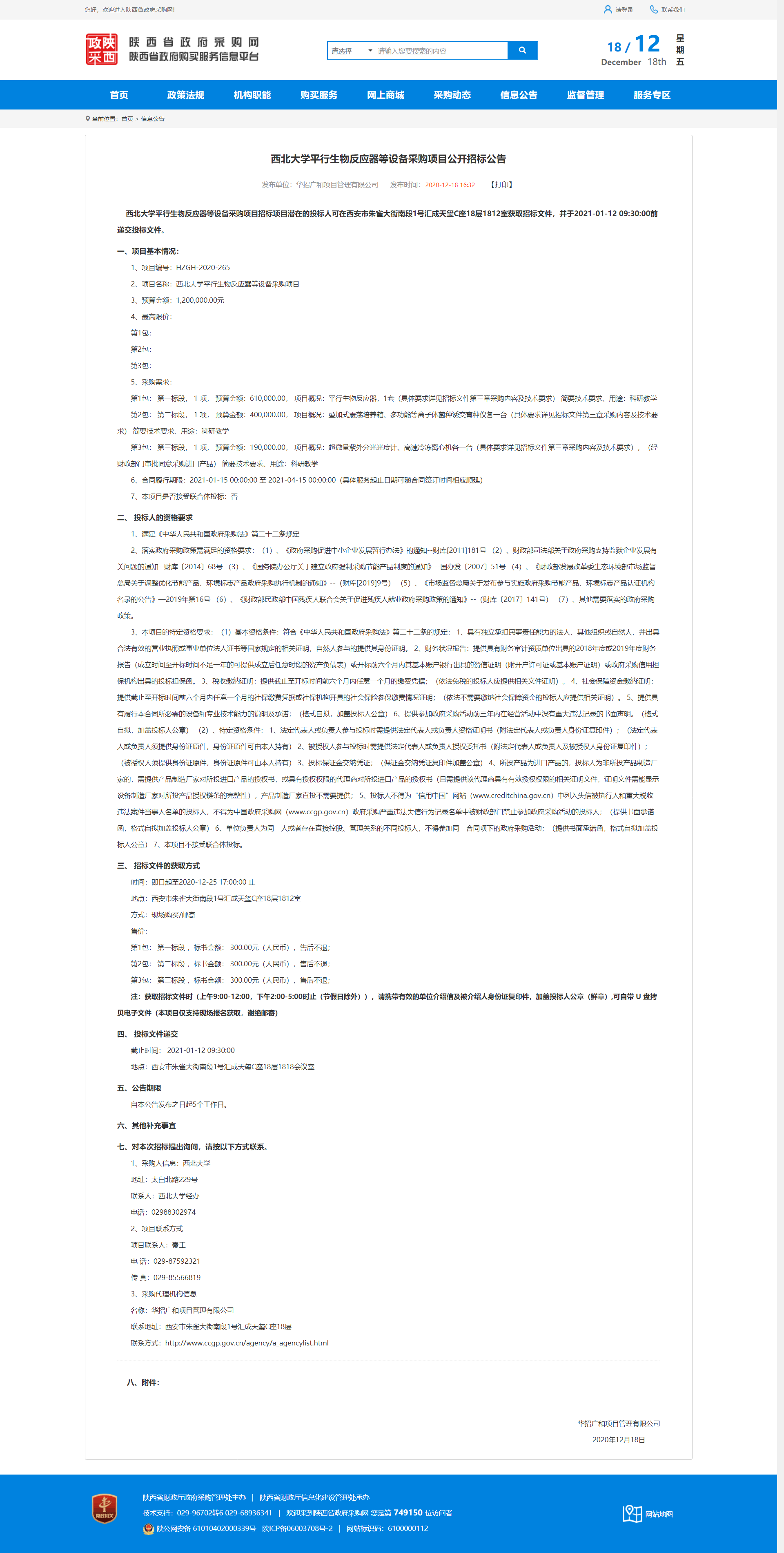 赢博官方(中国)总部平行生物反应器等设备采购项目公开招标公告 作者: 编辑:薛利娟 时间:2020-12-18 原公告地址:http://www.ccgp-shaanxi.gov.cn/notice/noticeDetail.do?noticeguid=8a85be32765f9c9b017674d0094477c2