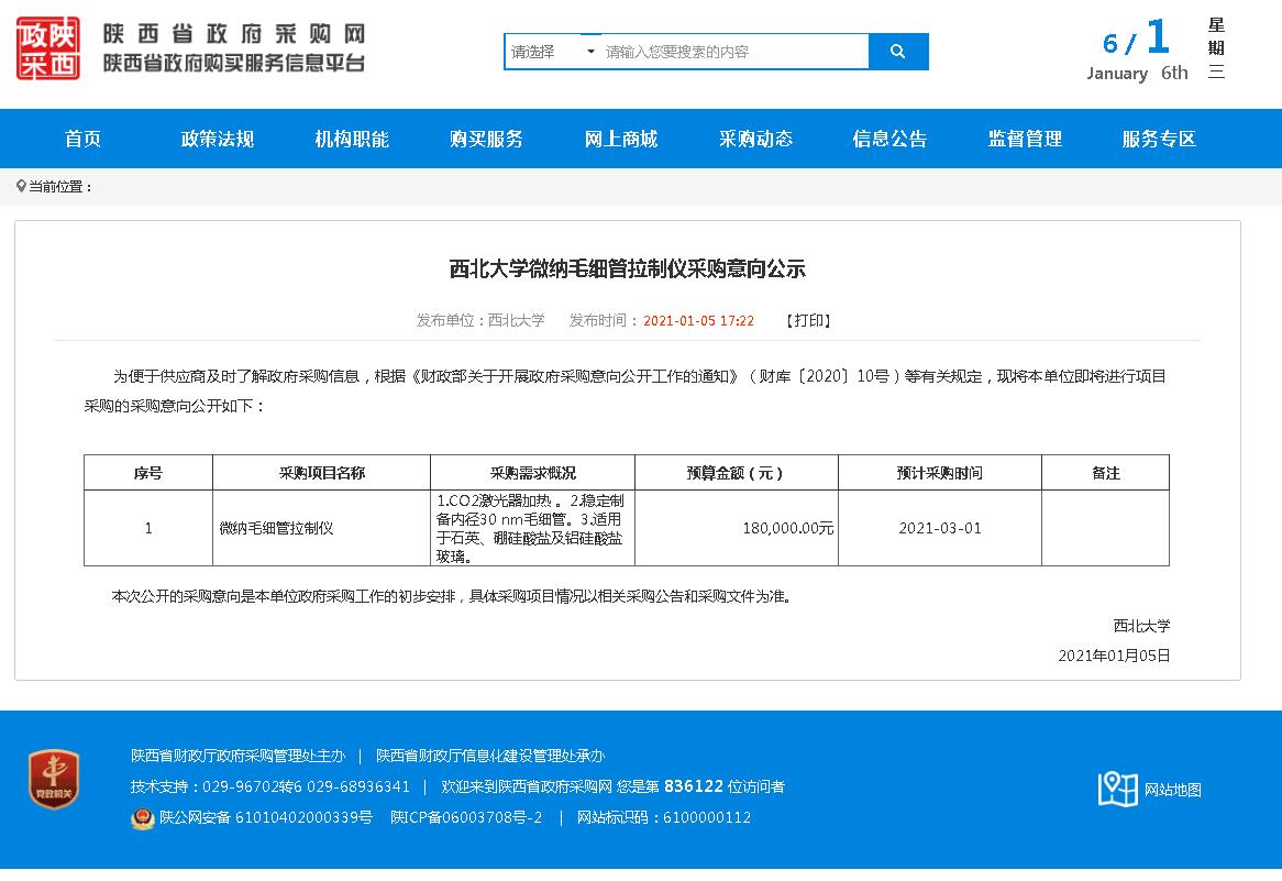 赢博官方(中国)总部微纳毛细管拉制仪采购意向公示
