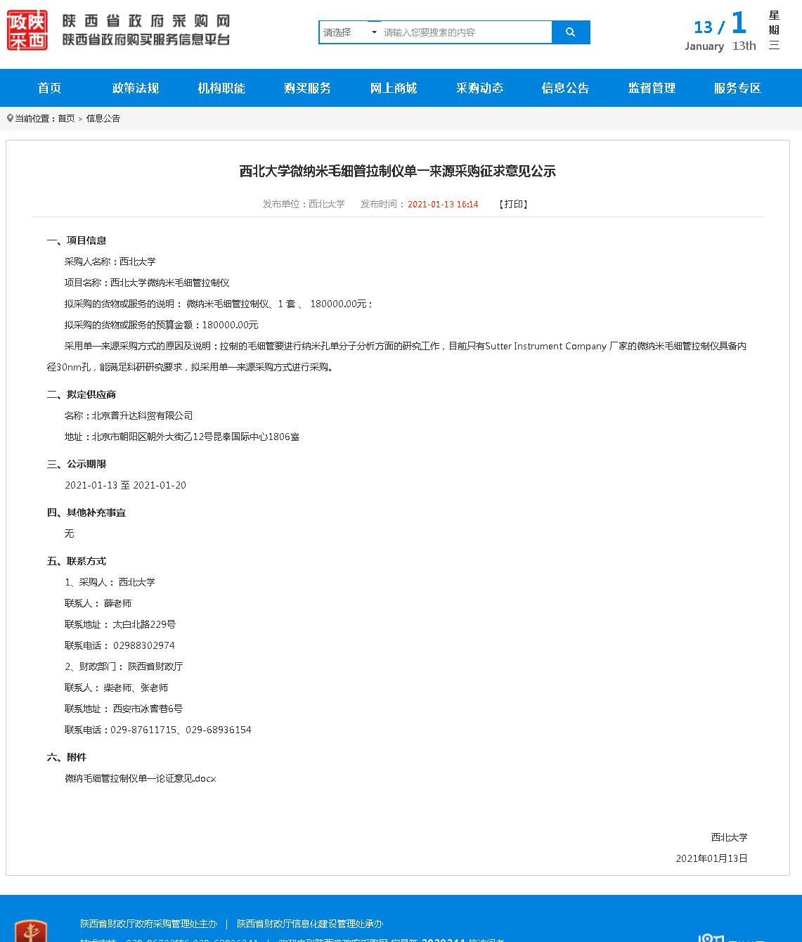 赢博官方(中国)总部微纳米毛细管拉制仪单一来源采购征求意见公示