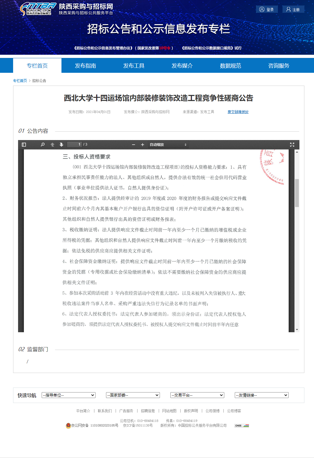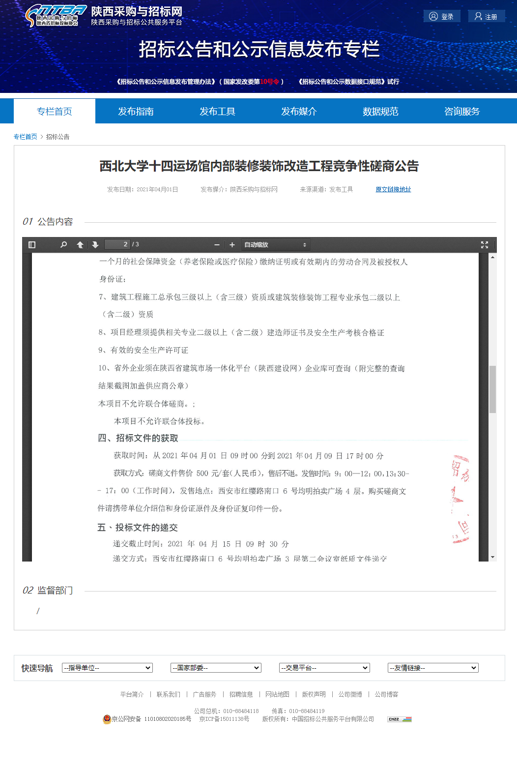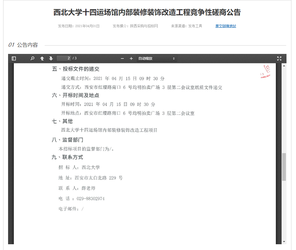 赢博官方(中国)总部十四运场馆内部装修装饰改造工程竞争性磋商公告 作者: 编辑:薛利娟 时间:2021-04-02 原公告链接地址:http://bulletin.sntba.com/biddingBulletin/2021-04-01/283967.html