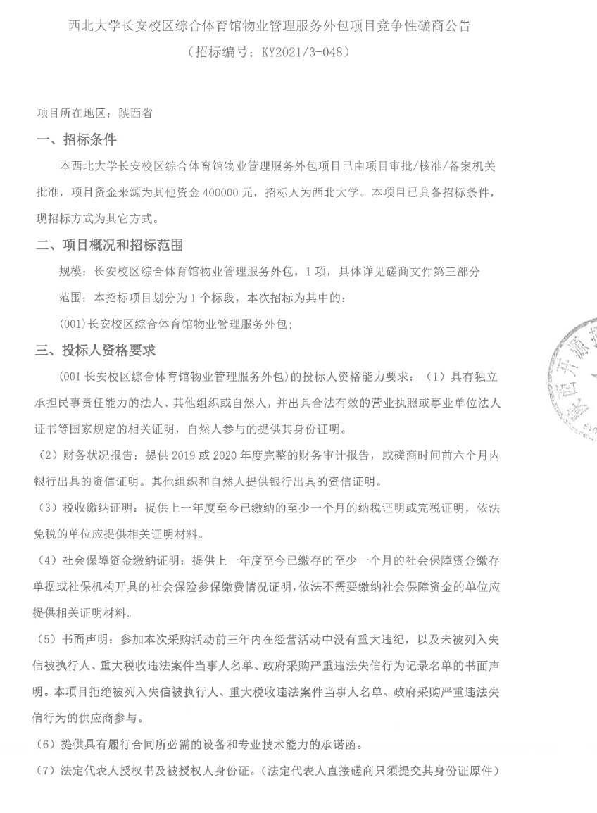 赢博官方(中国)总部长安校区综合体育馆物业管理服务外包项目竞争性磋商公告