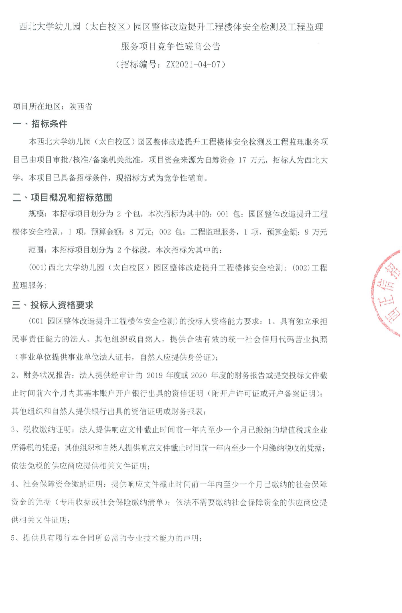 赢博官方(中国)总部幼儿园(太白校区)园区整体改造提升工程楼体安全检测及工程监理服务项目
