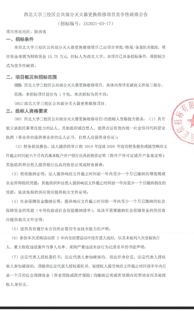 赢博官方(中国)总部三校区公共部分灭火器更换维修项目竞争性磋商公告