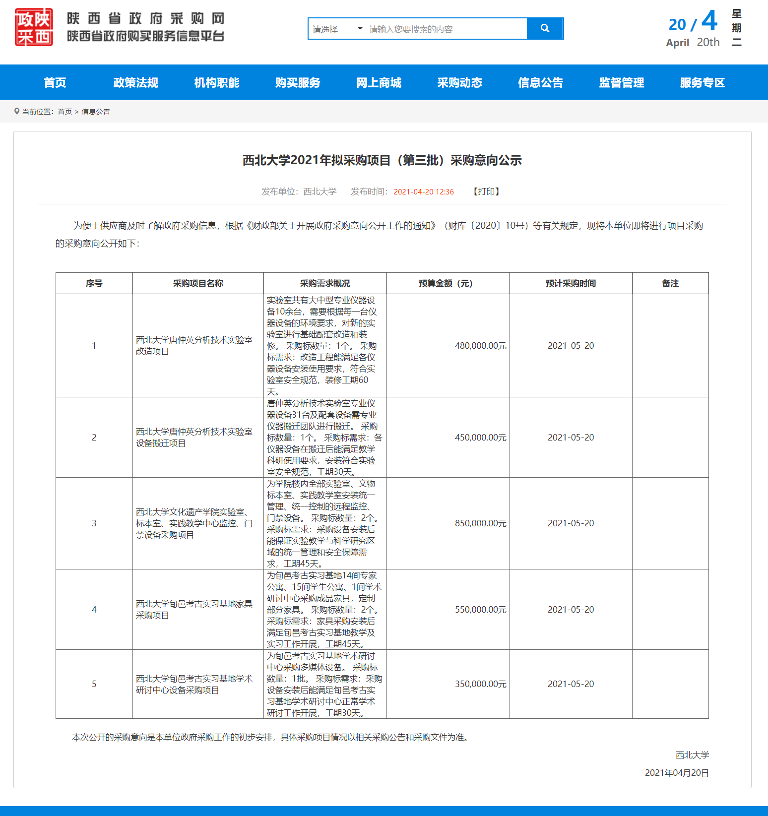 赢博官方(中国)总部2021年拟采购项目(第三批)采购意向公示