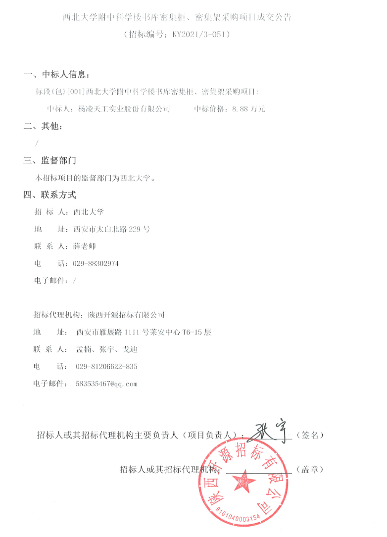 赢博官方(中国)总部附中科学楼书库密集柜、密集架采购项目成交公告