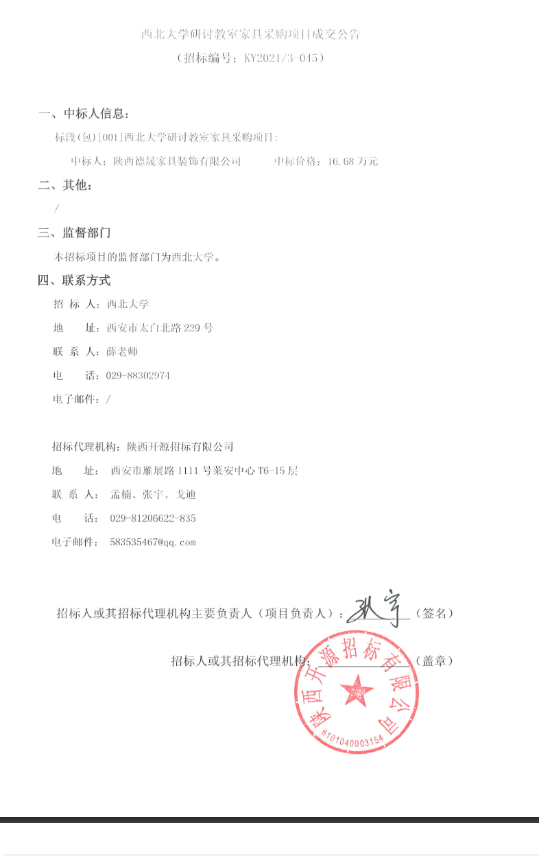 赢博官方(中国)总部研讨教室家具采购项目成交公告