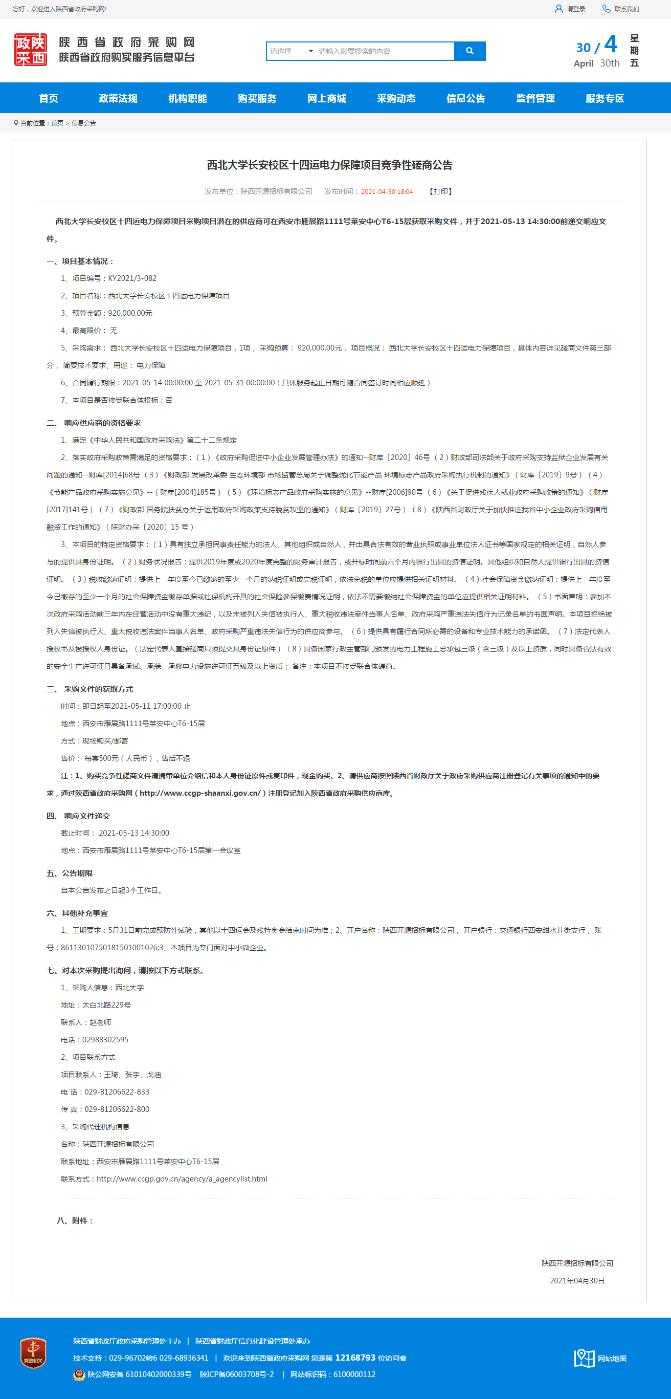 赢博官方(中国)总部长安校区十四运电力保障项目竞争性磋商公告