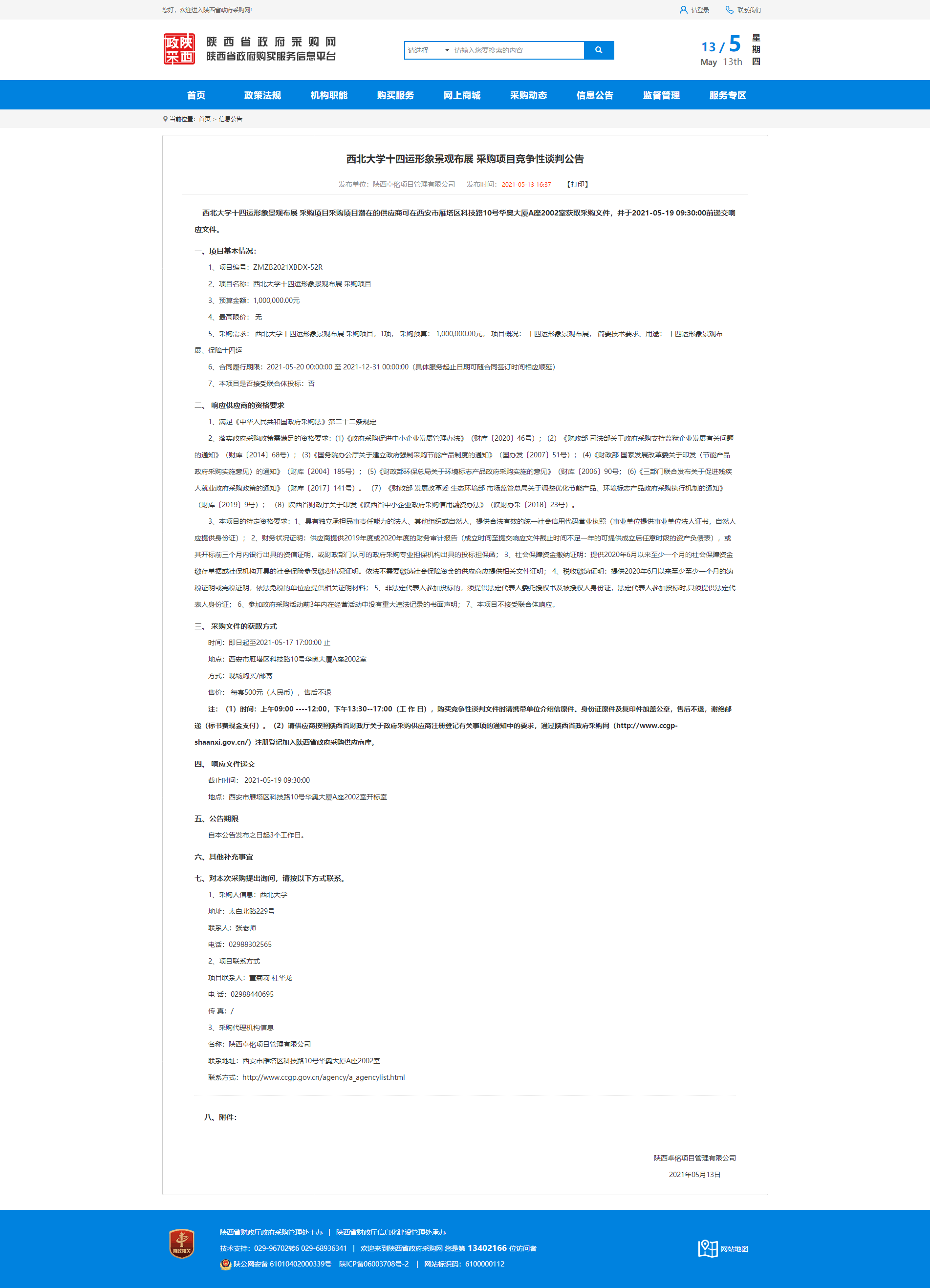 赢博官方(中国)总部十四运形象景观布展采购项目竞争性谈判公告