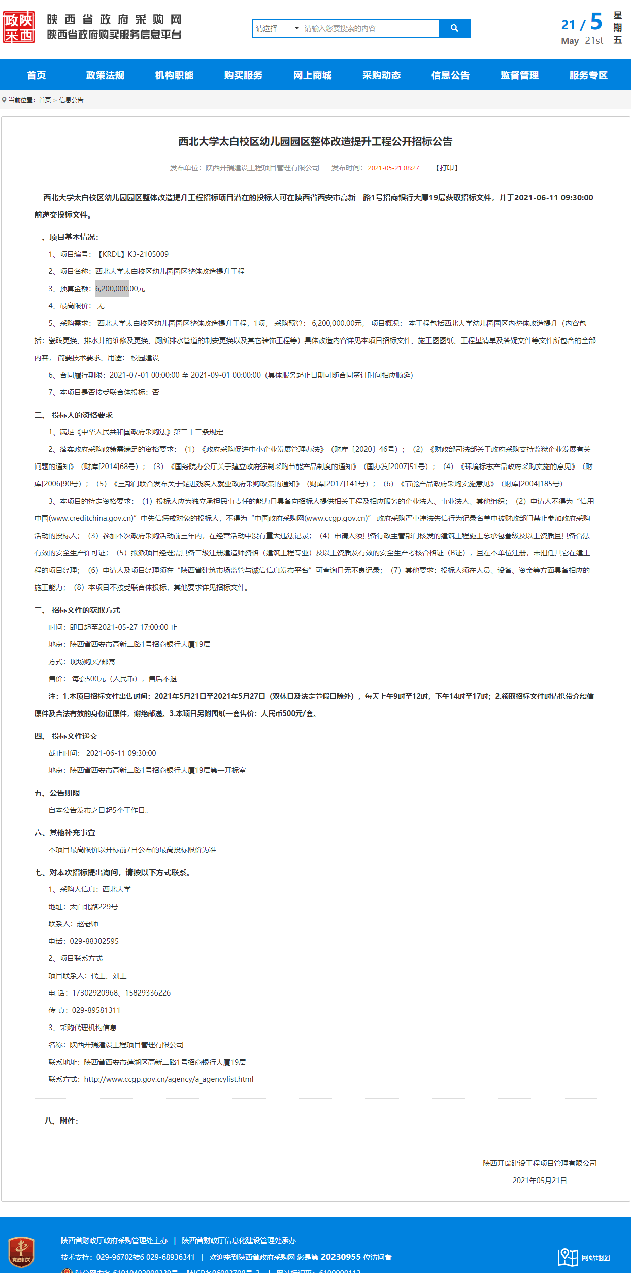 赢博官方(中国)总部太白校区幼儿园园区整体改造提升工程公开招标公告