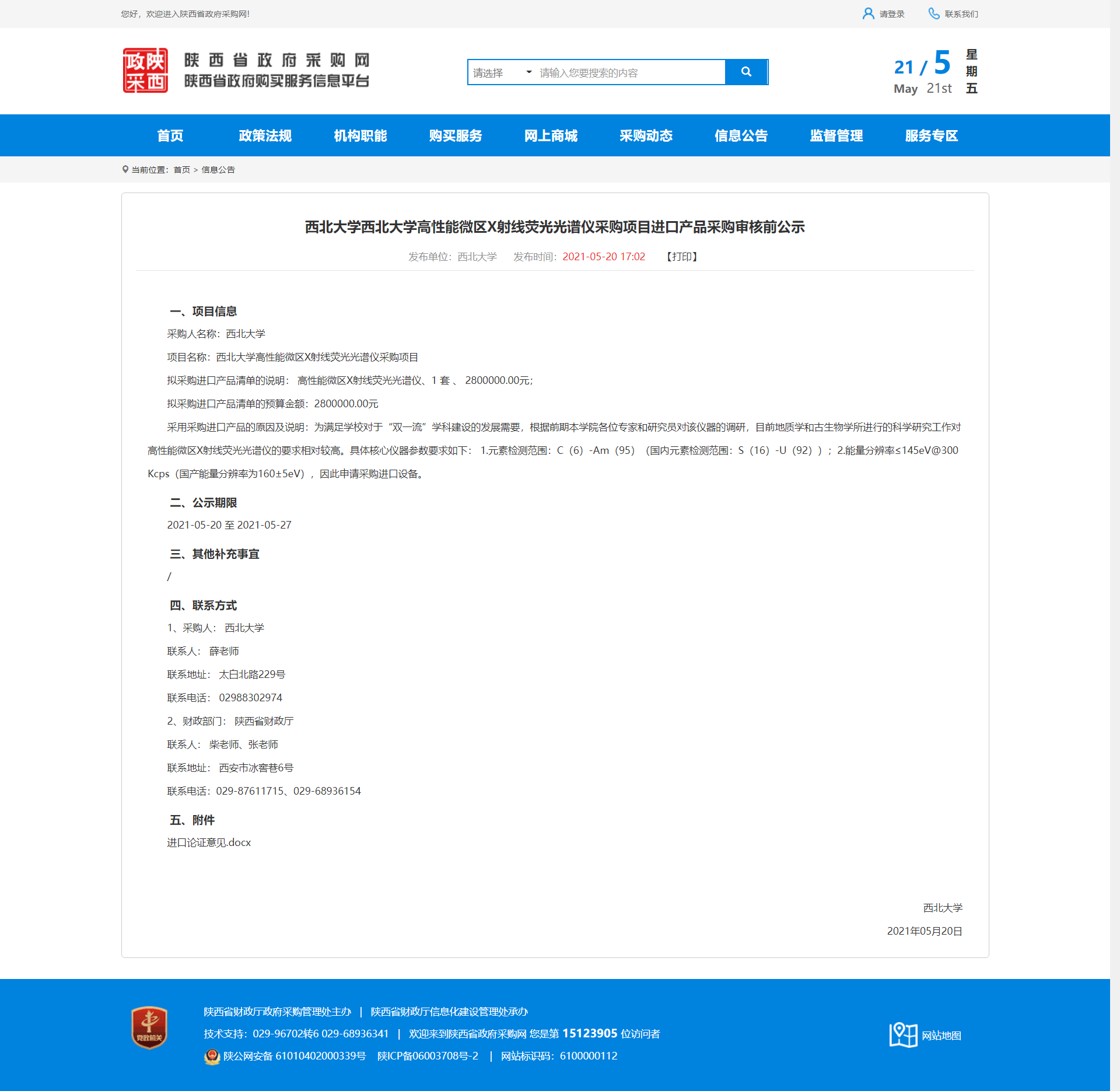 赢博官方(中国)总部高性能微区X射线荧光光谱仪采购项目进口产品采购审核前公示 作者: 编辑:薛利娟 时间:2021-05-21 原公告地址:http://www.ccgp-shaanxi.gov.cn/notice/noticeDetail.do?noticeguid=8a85be33791baa0f017988f95b141335