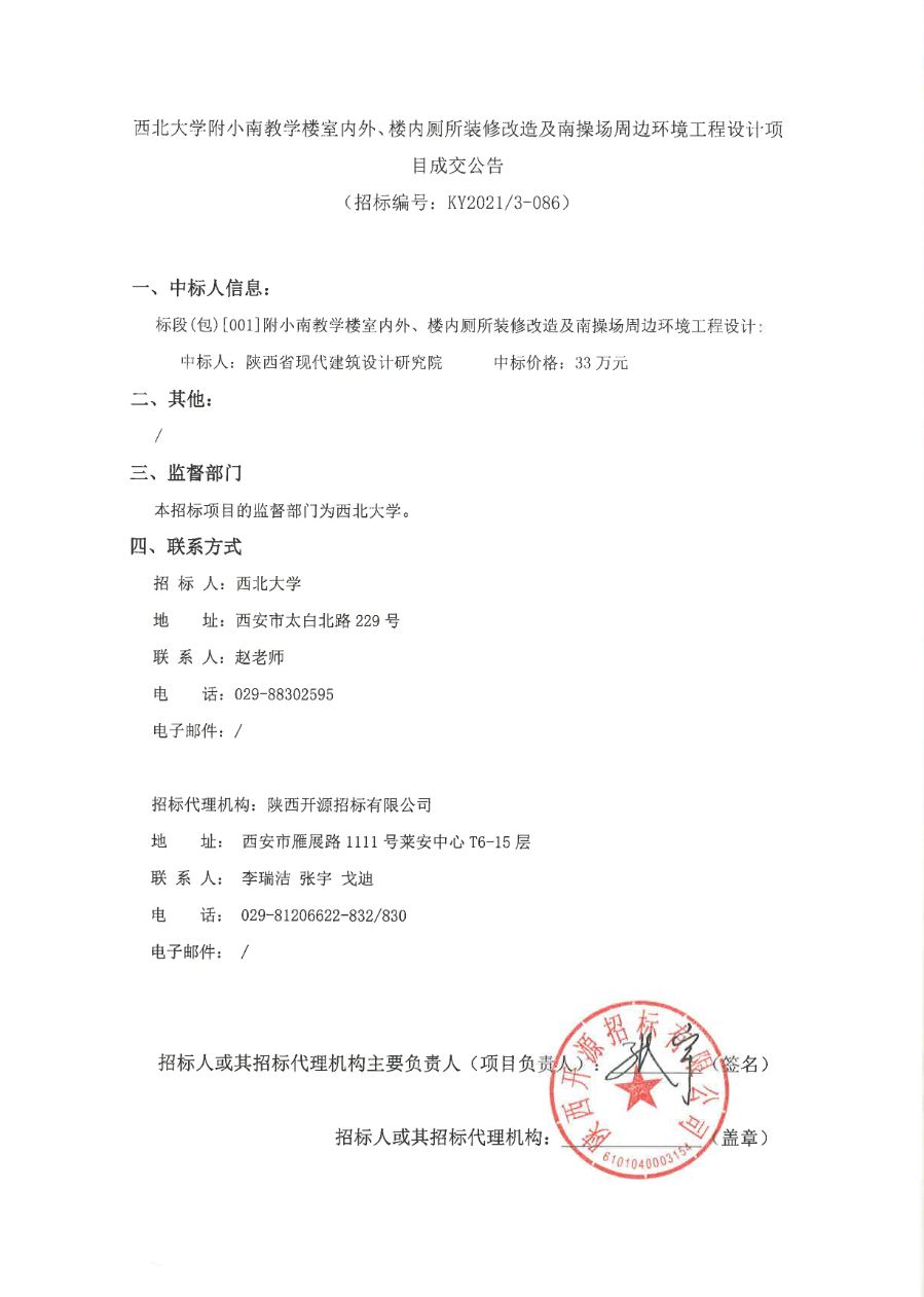 赢博官方(中国)总部附小南教学楼室内外、楼内厕所装修改造及南操场周边环境工程设计项目成交公告