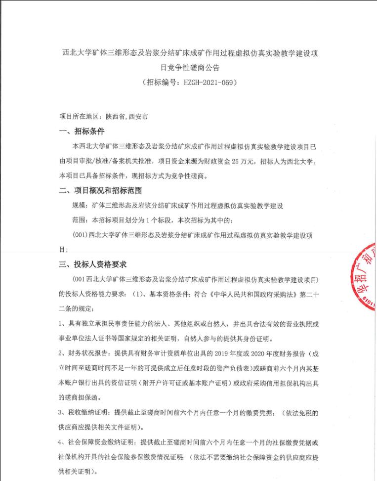 赢博官方(中国)总部矿体三维形态及岩浆分结矿床成矿作用过程虚拟仿真实验教学建设项目竞争性磋商公告