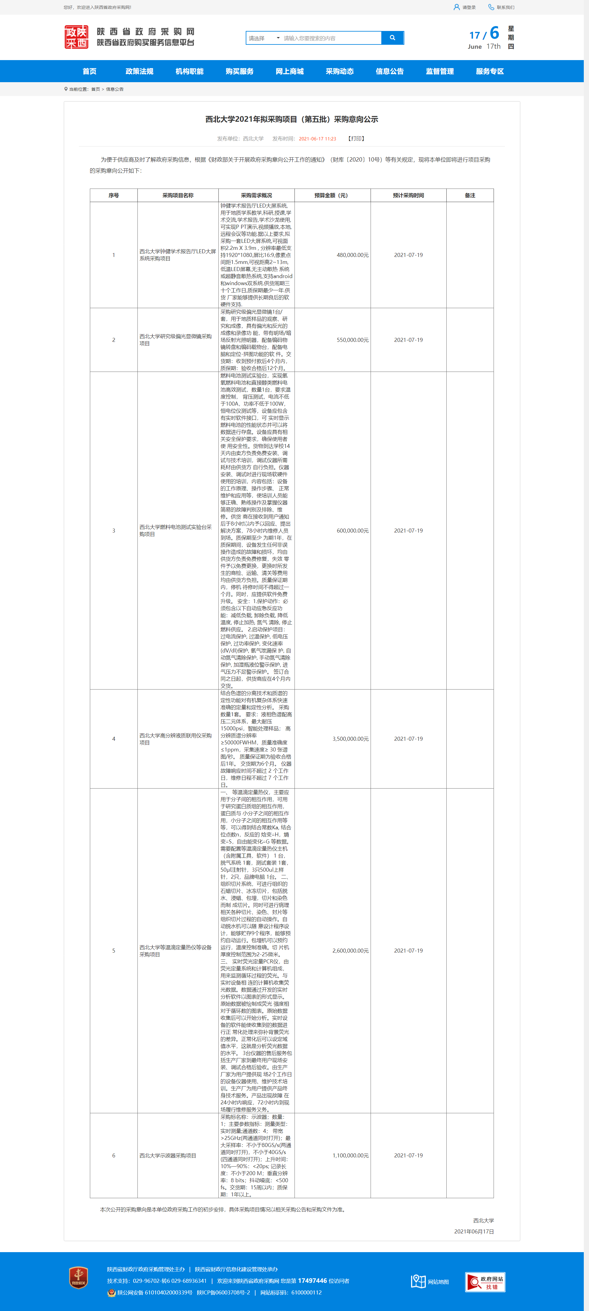 赢博官方(中国)总部2021年拟采购项目(第五批)采购意向公示 作者:采购与招标办公室 编辑: 时间:2021-06-17 原公告地址:http://www.ccgp-shaanxi.gov.cn/notice/noticeDetail.do?noticeguid=8a85be33791baa0f017a17ba426d2bfb