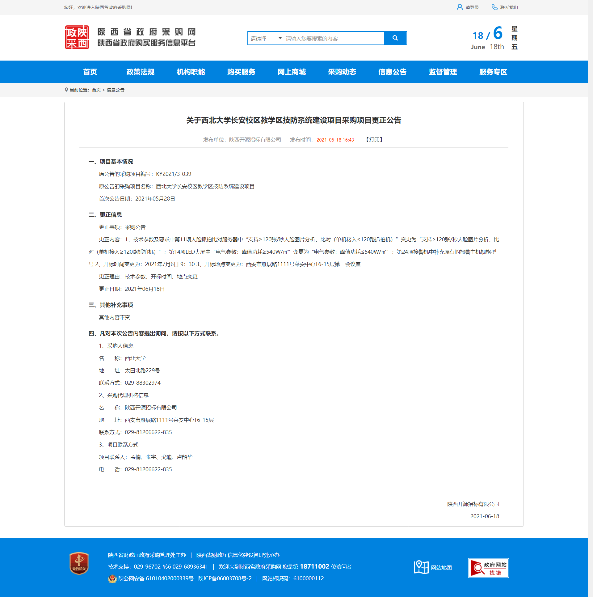 关于赢博官方(中国)总部长安校区教学区技防系统建设项目采购项目更正公告 作者: 编辑:采购与招标办公室 时间:2021-06-18 原公告地址:http://www.ccgp-shaanxi.gov.cn/notice/noticeDetail.do?noticeguid=8a85be3478a59799017a1e3c725d50d9