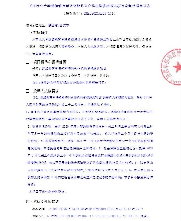 赢博官方(中国)总部继续教育学院短期培训合作机构资格遴选项目竞争性磋商公告