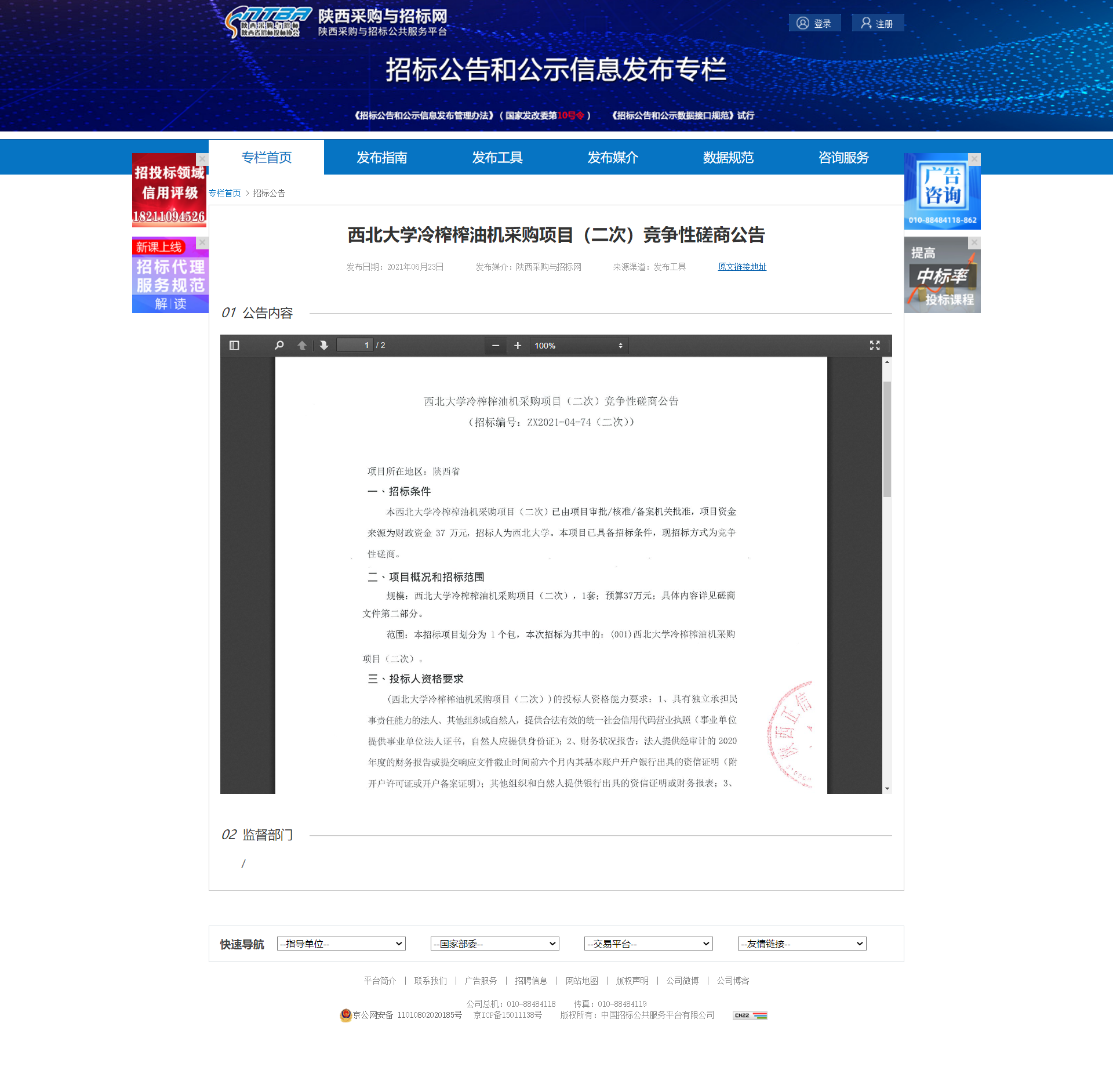 赢博官方(中国)总部冷榨榨油机采购项目(二次)竞争性磋商公告 作者: 编辑:采购与招标办公室 时间:2021-06-24 原公告地址:http://bulletin.sntba.com/biddingBulletin/2021-06-23/311036.html