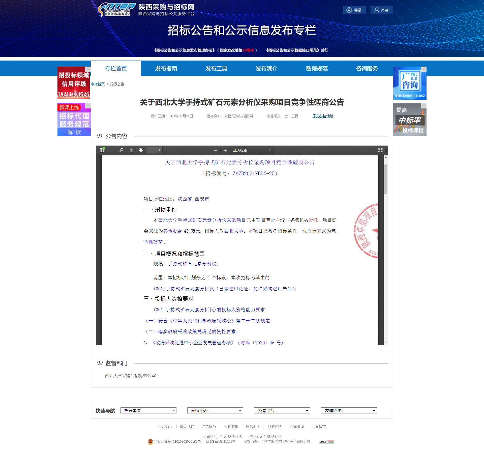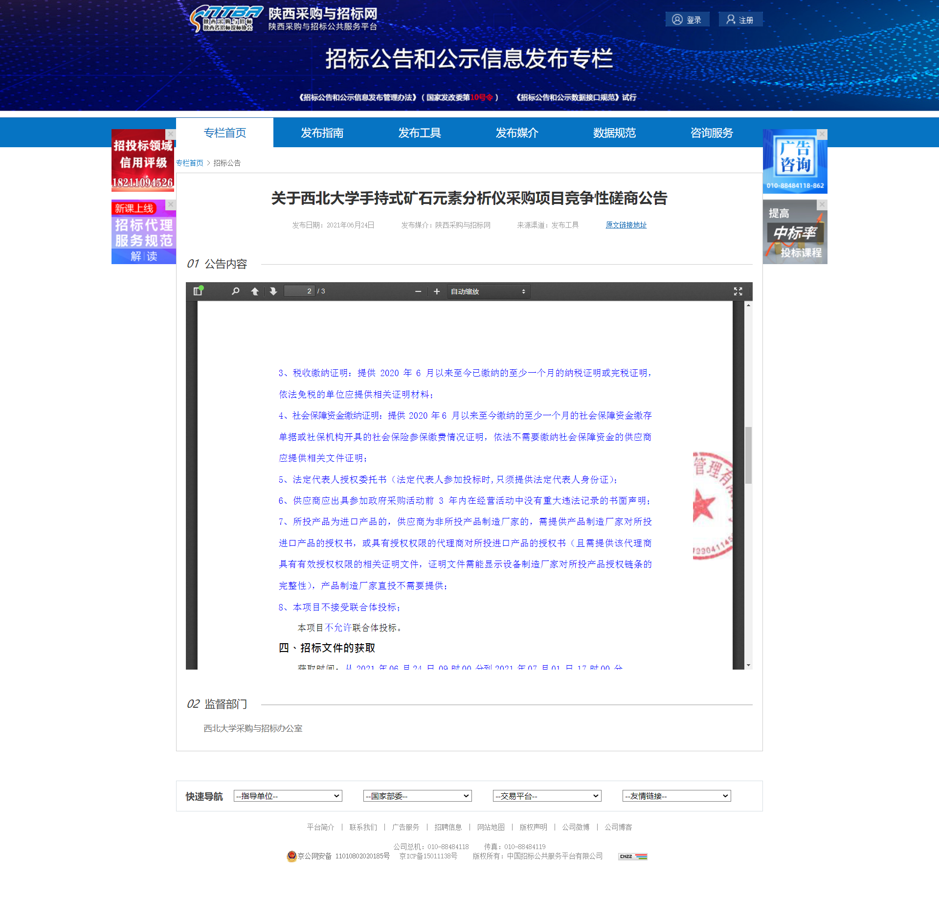 赢博官方(中国)总部手持式矿石元素分析仪采购项目竞争性磋商公告 作者: 编辑:薛利娟 时间:2021-06-24 原公告地址:http://bulletin.sntba.com/biddingBulletin/2021-06-24/311501.html