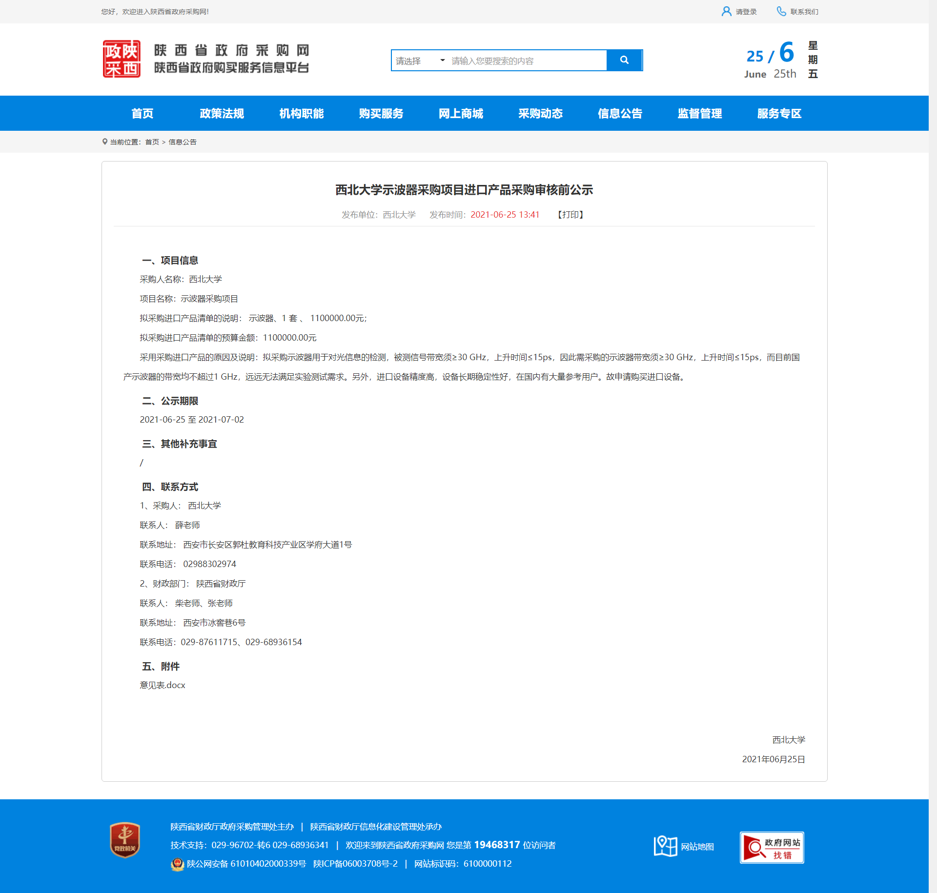 赢博官方(中国)总部示波器采购项目进口产品采购审核前公示 作者: 编辑:采购与招标办公室 时间:2021-06-25 原公告地址:http://www.ccgp-shaanxi.gov.cn/notice/noticeDetail.do?noticeguid=8a85be33791baa0f017a41ad0b58624b