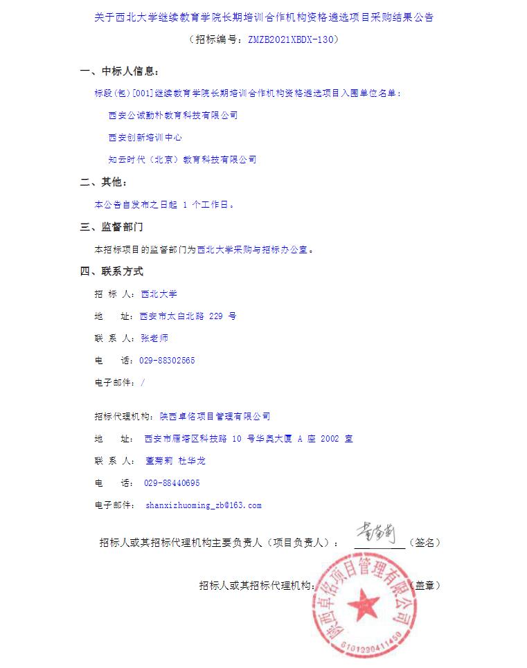 关于赢博官方(中国)总部继续教育学院长期培训合作机构资格遴选项目采购结果公告