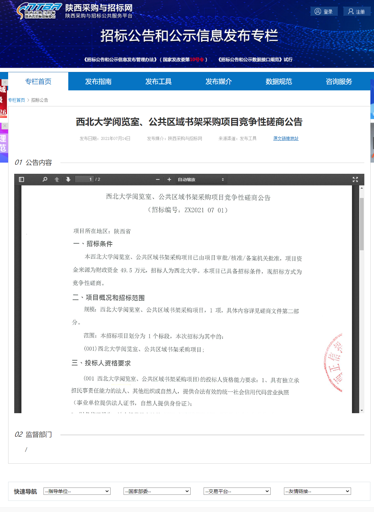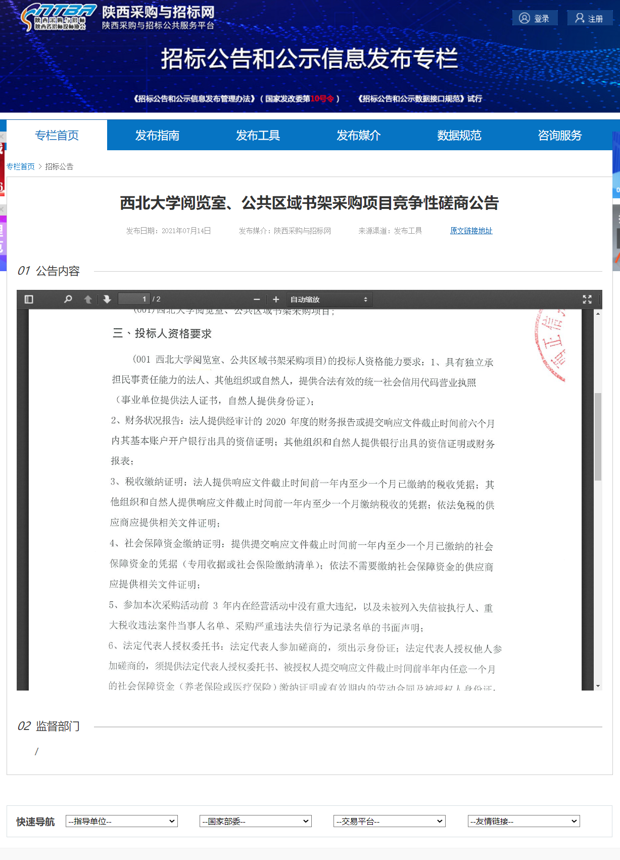 赢博官方(中国)总部阅览室、公共区域书架采购项目竞争性磋商公告 作者: 编辑:采购与招标办公室 时间:2021-07-15 原公告地址:http://bulletin.sntba.com/biddingBulletin/2021-07-14/318895.html