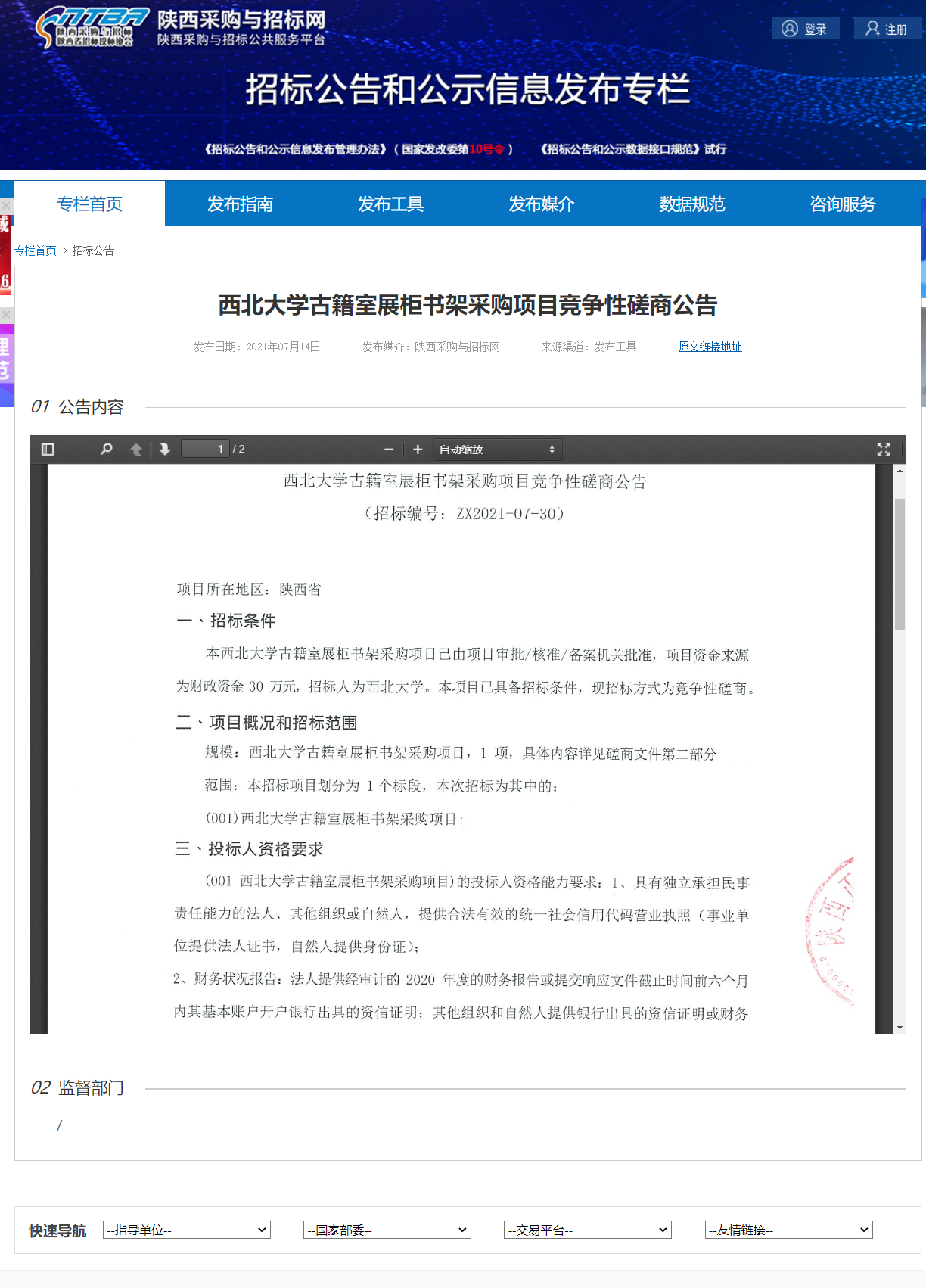 赢博官方(中国)总部古籍室展柜书架采购项目竞争性磋商公告 作者: 编辑:采购与招标办公室 时间:2021-07-15 原公告地址:http://bulletin.sntba.com/biddingBulletin/2021-07-14/318898.html