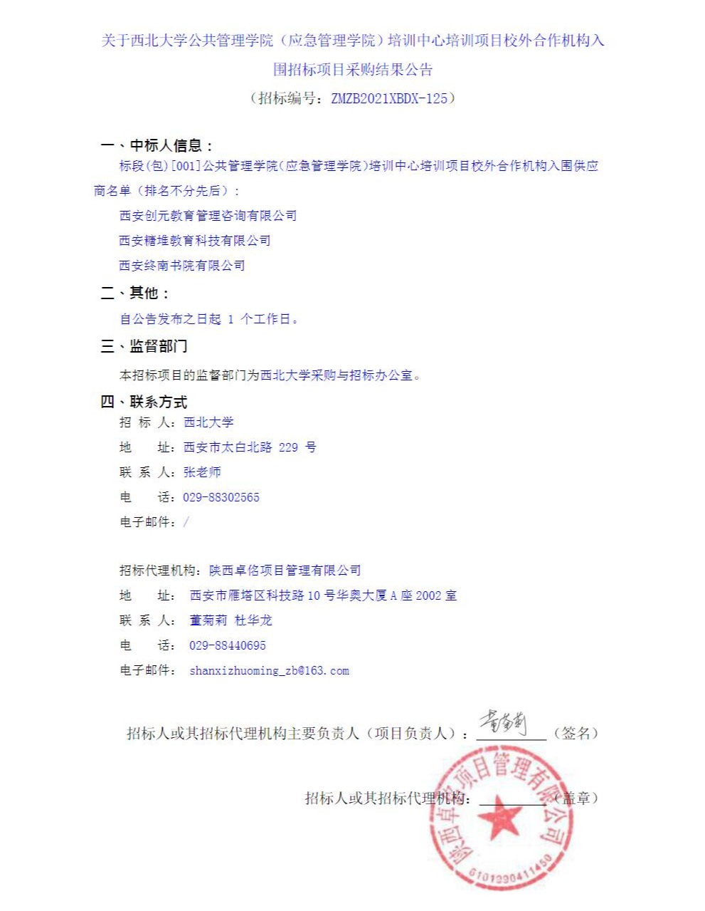 关于赢博官方(中国)总部公共管理学院(应急管理学院)培训中心培训项目校外合作机构入围招标项目采购结果公告
