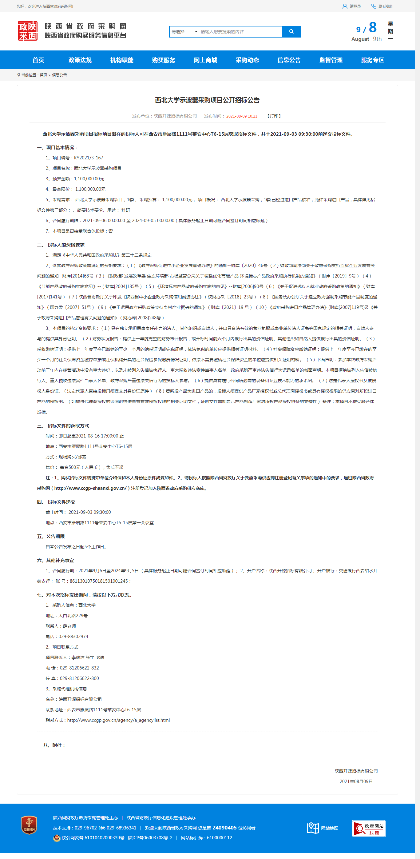 赢博官方(中国)总部示波器采购项目公开招标公告 作者: 编辑:采购与招标办公室 时间:2021-08-09 原公告地址:http://www.ccgp-shaanxi.gov.cn/notice/noticeDetail.do?noticeguid=8a85be347b04610d017b28a3aa0f0939