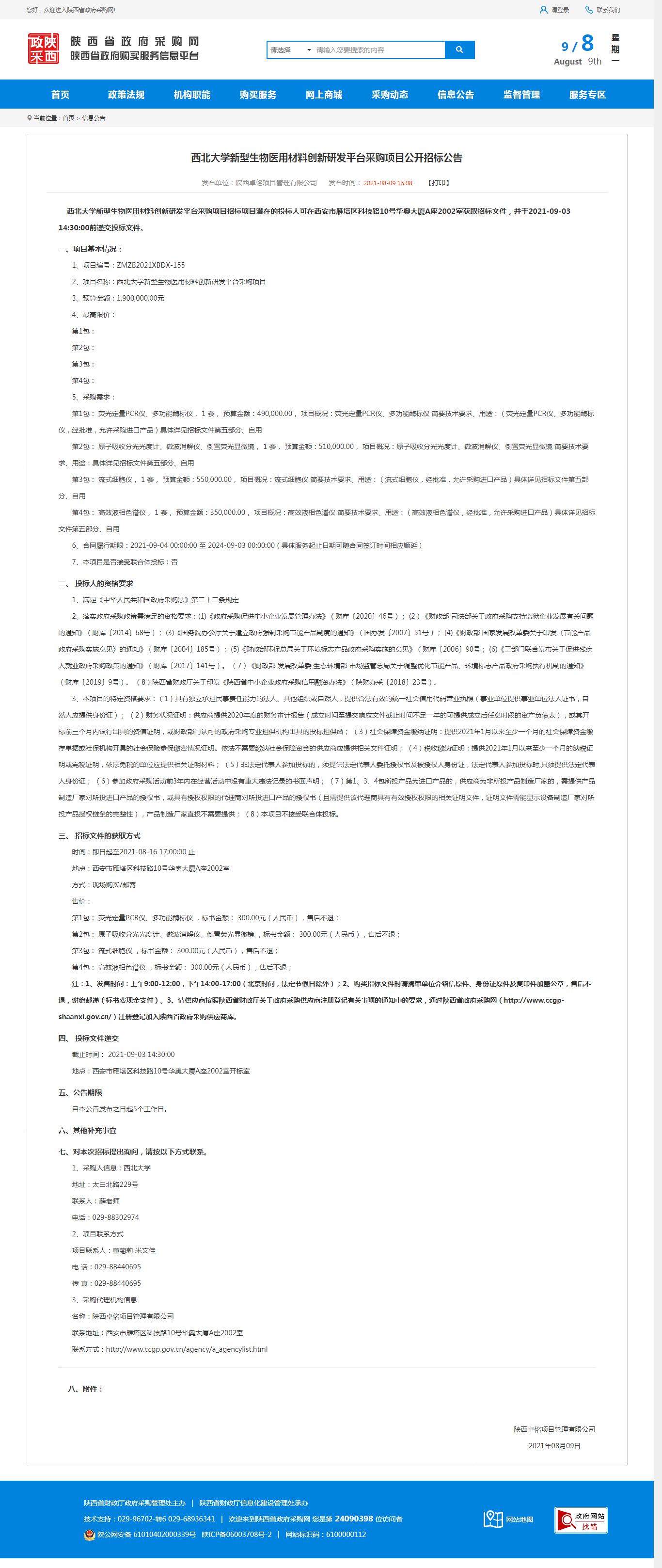 赢博官方(中国)总部新型生物医用材料创新研发平台采购项目公开招标公告 作者: 编辑:采购与招标办公室 时间:2021-08-09 原公告地址:http://www.ccgp-shaanxi.gov.cn/notice/noticeDetail.do?noticeguid=8a85be347b04610d017b2980fd8a15b4