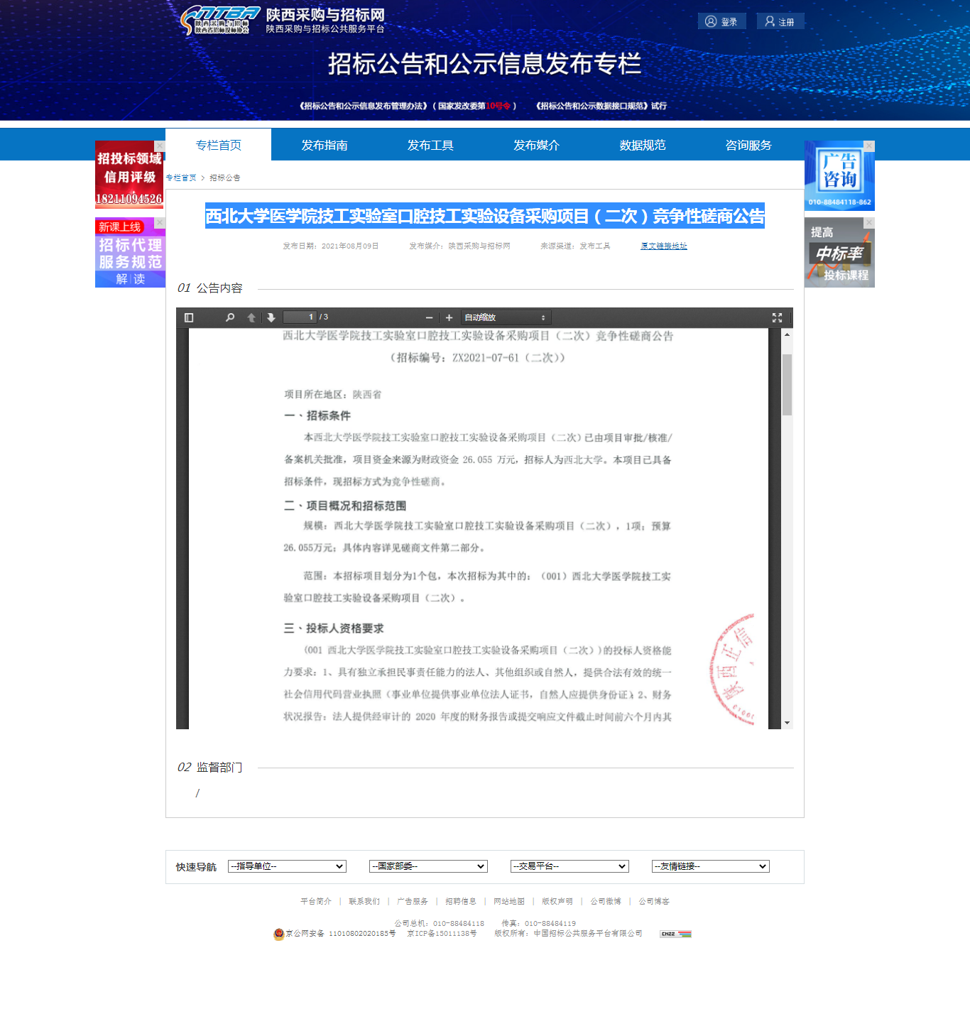 赢博官方(中国)总部医学院技工实验室口腔技工实验设备采购项目(二次)竞争性磋商公告 作者: 编辑:采购与招标办公室 时间:2021-08-09 原公告地址:http://bulletin.sntba.com/biddingBulletin/2021-08-09/328931.html