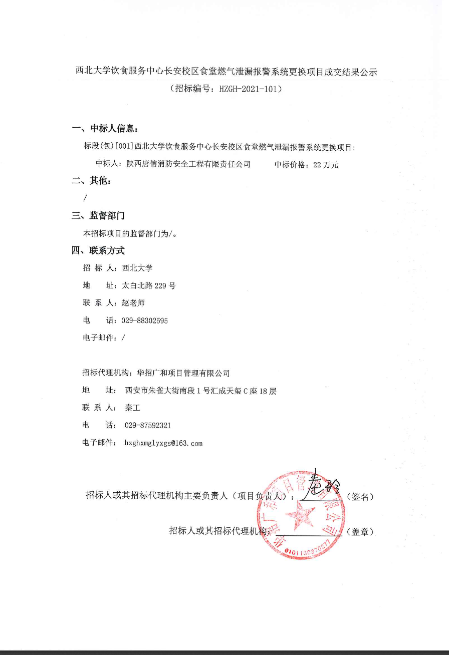 赢博官方(中国)总部饮食服务中心长安校区食堂燃气泄漏报警系统更换项目成交结果公示