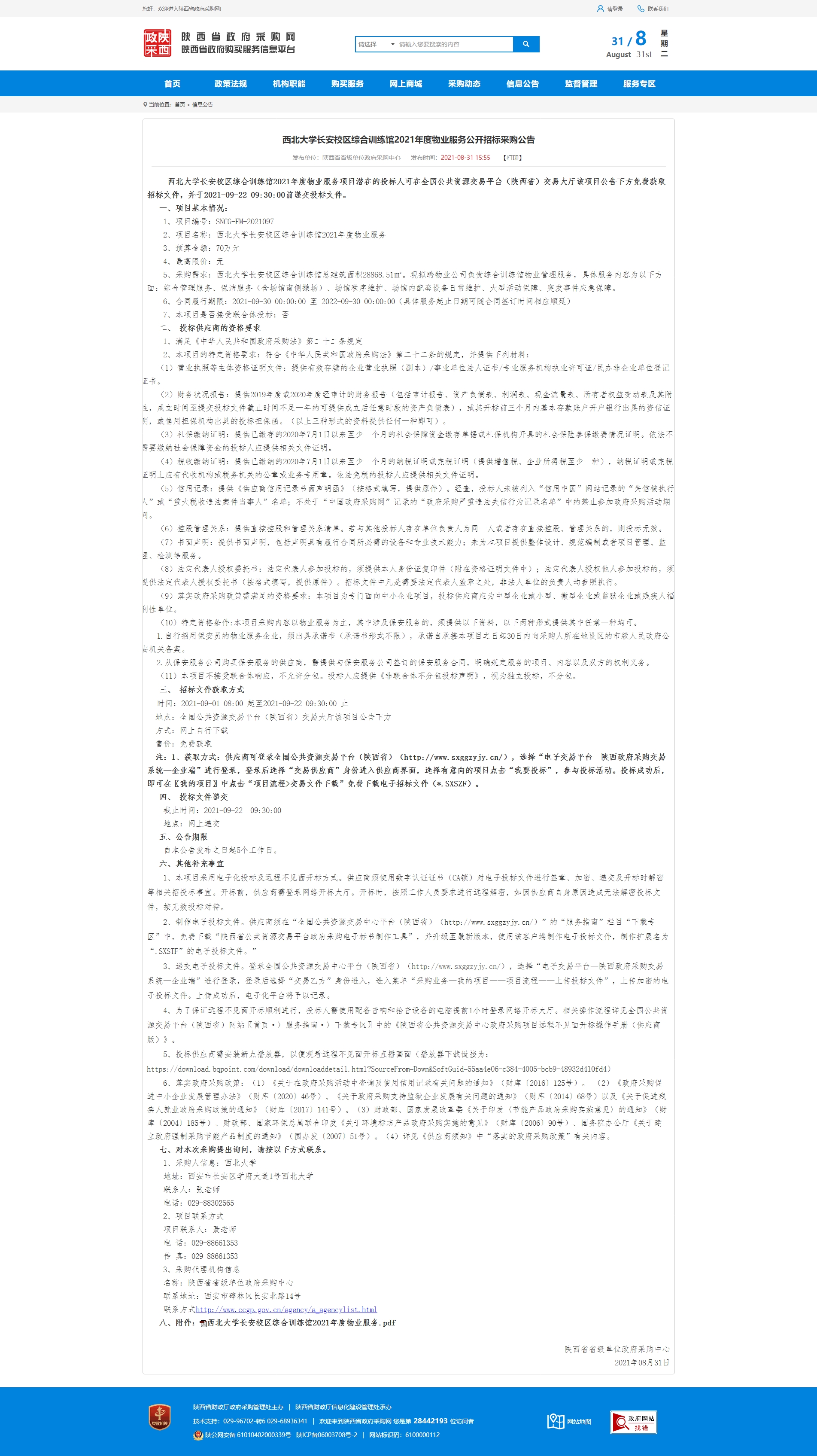 赢博官方(中国)总部长安校区综合训练馆2021年度物业服务公开招标采购公告