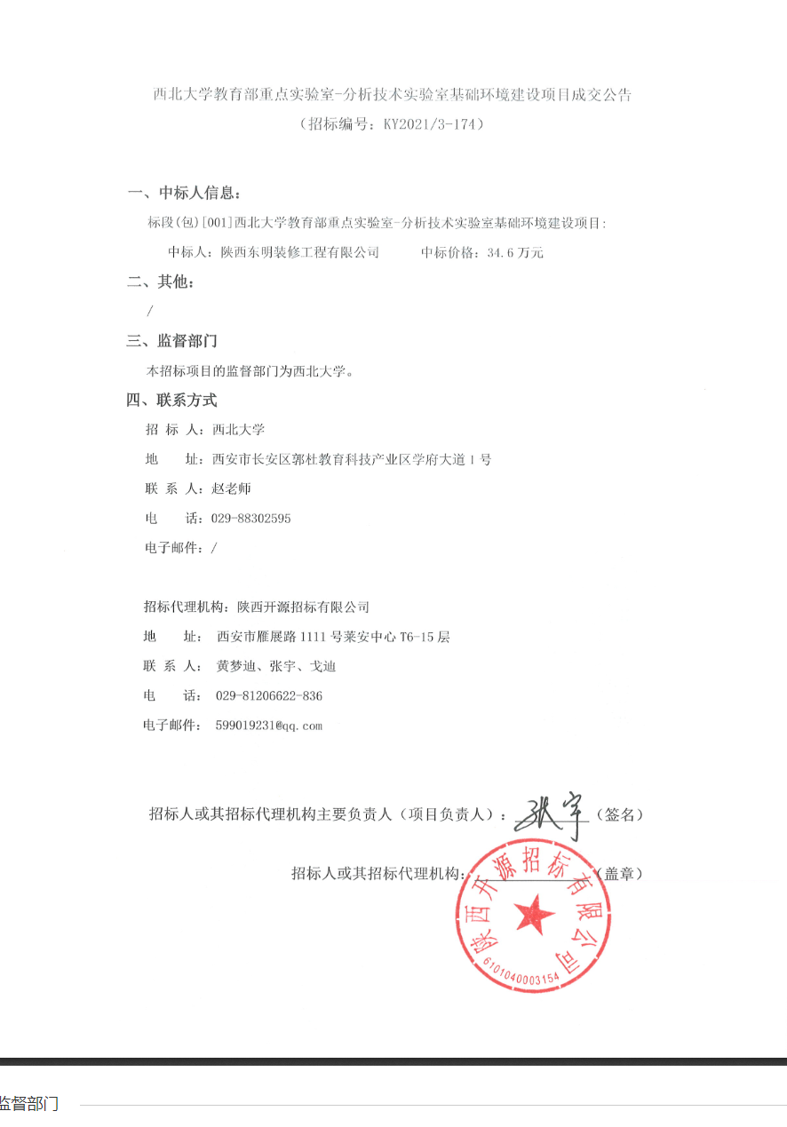 赢博官方(中国)总部教育部重点实验室-分析技术实验室基础环境建设项目成交公告