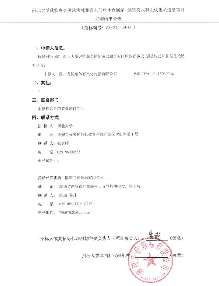 关于赢博官方(中国)总部残特奥会硬地滚球和盲人门球体育展示、颁奖仪式和礼仪化妆造型项目采购结果公告