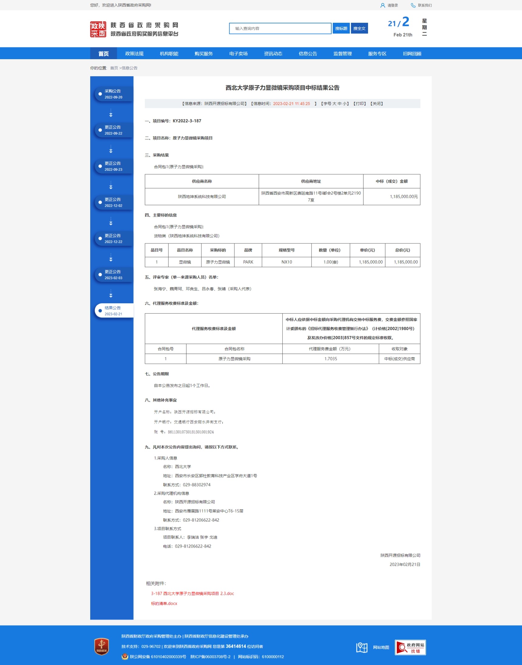 赢博官方(中国)总部原子力显微镜采购项目中标结果公告 作者: 编辑:采购与招标办公室 时间:2023-02-21 原公告链接:http://www.ccgp-shaanxi.gov.cn/freecms/site/shaanxi/ggxx/info/2023/8a69c672865ced8c0186720ee0ca4629.html?noticeType=001021¬iceId=0563be58-b19b-11ed-9a8e-08c0eb20c666