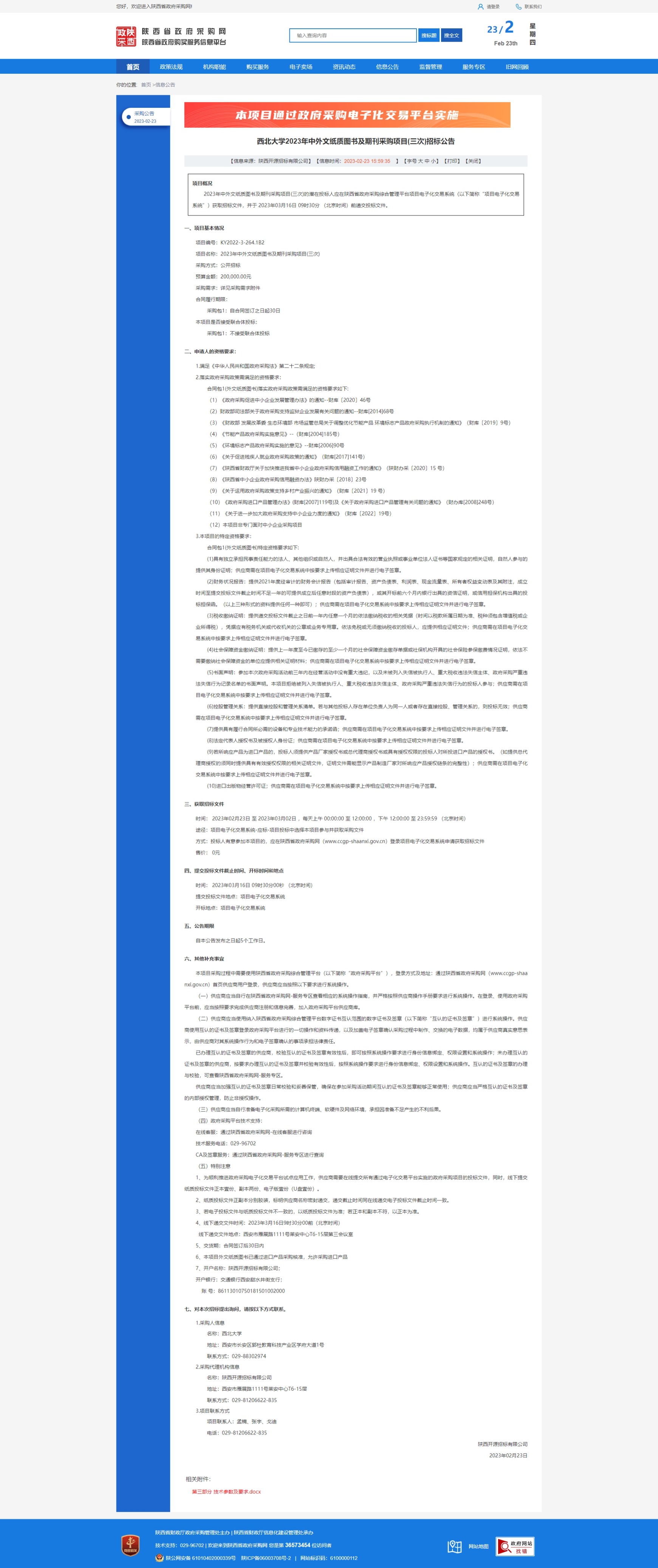 赢博官方(中国)总部2023年中外文纸质图书及期刊采购项目(三次)招标公告 作者: 编辑:采购与招标办公室 时间:2023-02-23 原公告链接:http://www.ccgp-shaanxi.gov.cn/freecms/site/shaanxi/ggxx/info/2023/8a69c672865ced8c01867d3e22983dee.html?noticeType=001011¬iceId=de2454c9-b350-11ed-9a8e-08c0eb20c666