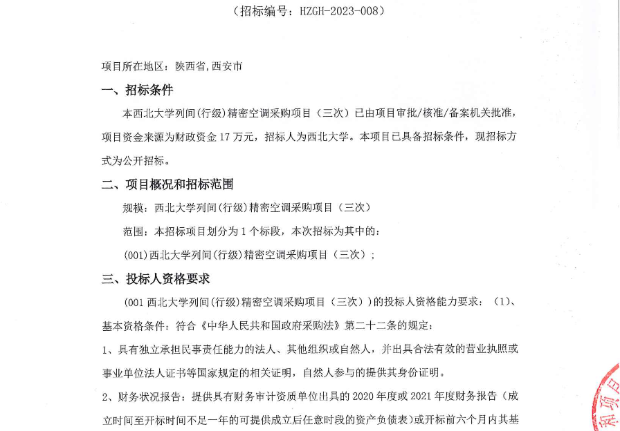 赢博官方(中国)总部列间(行级)精密空调采购项目(三次)招标公告 作者: 编辑:采购与招标办公室 时间:2023-02-27 原公告链接:http://bulletin.sntba.com/biddingBulletin/2023-02-27/531217.html