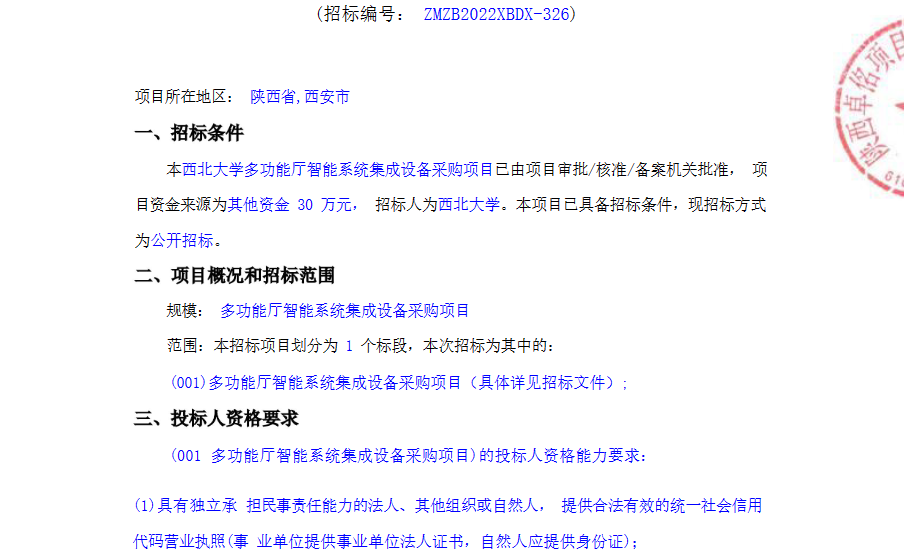 赢博官方(中国)总部多功能厅智能系统集成设备采购项目公开招标公告 作者: 编辑:采购与招标办公室 时间:2023-02-28 原公告链接:http://bulletin.sntba.com/biddingBulletin/2023-02-28/531633.html