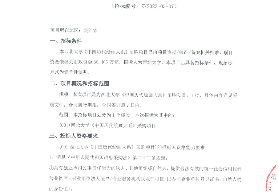 赢博官方(中国)总部《中国历代绘画大系》采购项目竞争性谈判公告 作者: 编辑:采购与招标办公室 时间:2023-04-18 原公告链接:http://bulletin.sntba.com/biddingBulletin/2023-04-18/548646.html
