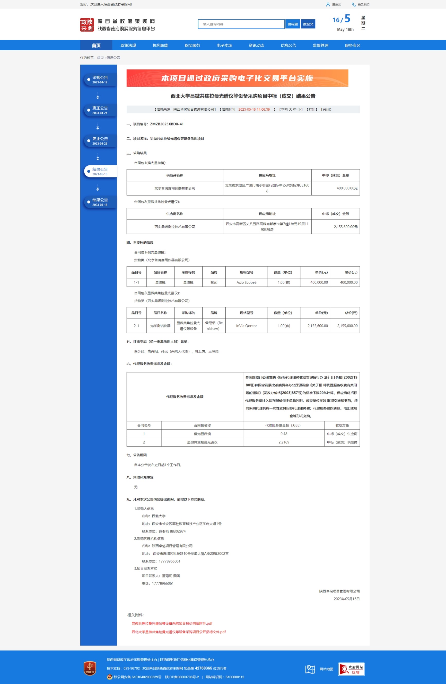 赢博官方(中国)总部显微共焦拉曼光谱仪等设备采购项目第1、2包中标(成交)结果公告 作者: 编辑:采购与招标办公室 时间:2023-05-16 原公告链接:http://www.ccgp-shaanxi.gov.cn/freecms/site/shaanxi/ggxx/info/2023/8a69c42187bb9c05018822b06eb61ad4.html?noticeType=001021¬iceId=d4ff6b9d-f3b0-11ed-9a8e-08c0eb20c666